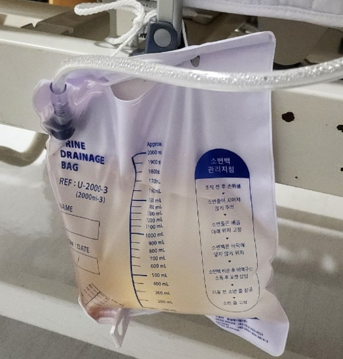 기저귀를 갈고 먹을 것을 챙겨드리던 것에서 한 발 더 나아가 깊어진 아버지의 욕창과 다리 상처를 소독하고 드레싱 하며 2,3시간 간격으로 아버지의 체위를 변경했습니다. 그리고 아버지에게 연결된 콧줄로 환자용 유동식을 드리고 콧줄과 연결된 피딩백(환자용 유동식을 담은 주머니)을 매번 물로 씻어 말리고 정기적으로 교체했습니다. 또한 소변줄로 나온 소변통 소변의 색과 양을 체크하고 체온과 혈압, 맥박을 살펴보았습니다.