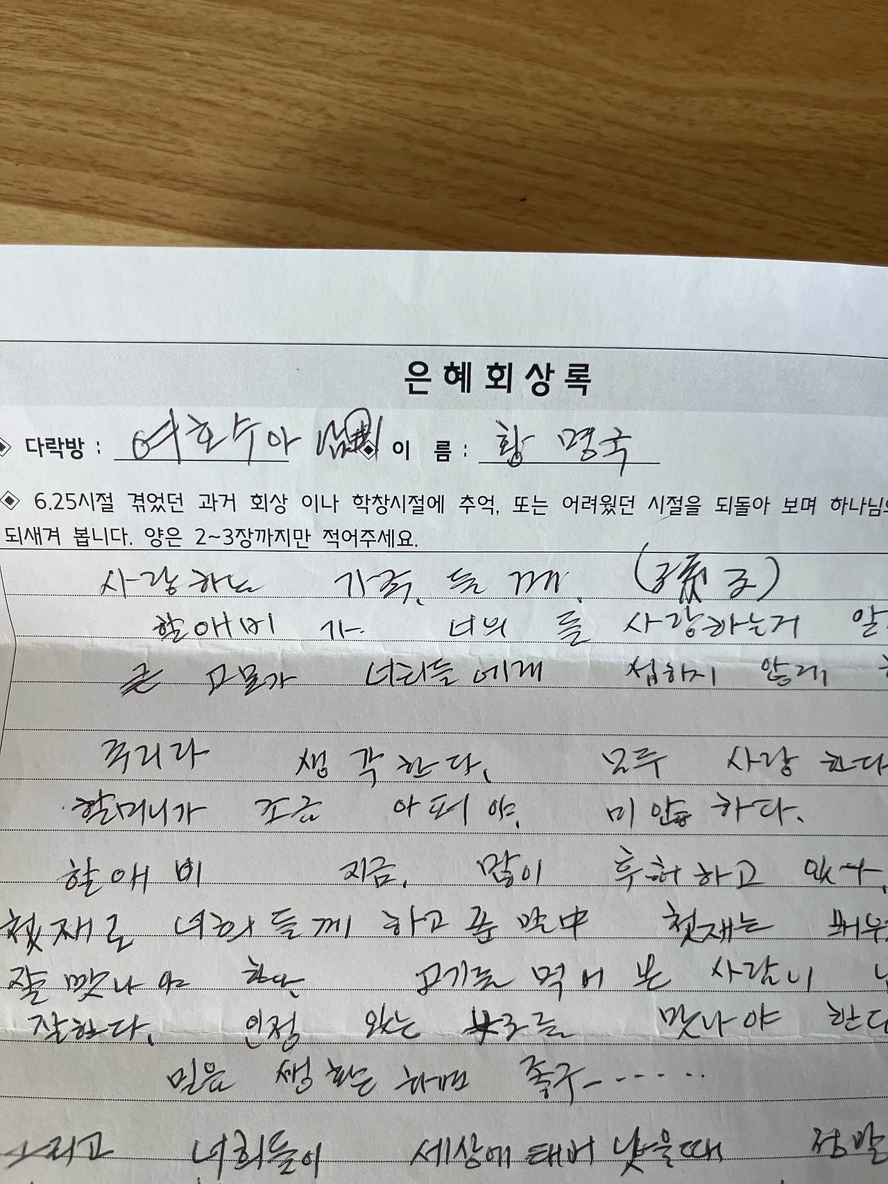 * 아버지 말씀대로 이 편지는 아이들에게 보낸 할아버지의 마지막 편지가 되었습니다.