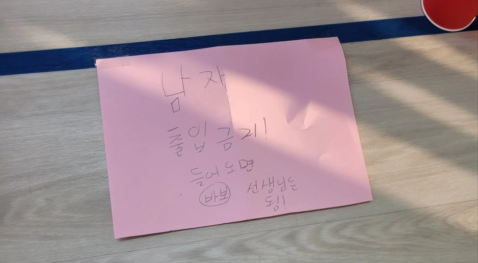 남자 출입금지! 들어오면 바보. 선생님은 됨!