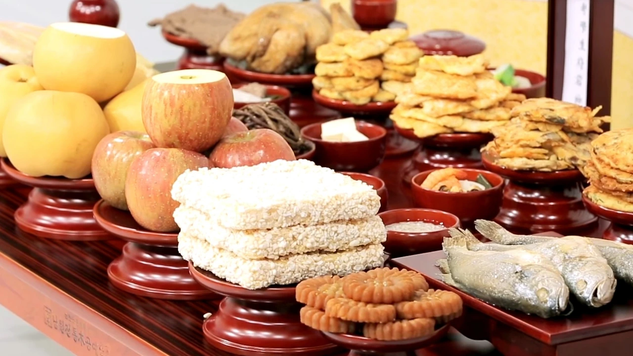 추석에는 우선 탐스럽게 잘 생긴 햇과일과 그 해에 수확한 햅쌀을 기본으로 송편과 산적, 전, 생선이 차례 상에 오르고 삼색 나물과 갱(탕)이 명절 메뉴이다.