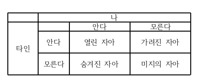 교원 임용고시를 준비하면서 교육학에서 공부했었던 조하리의 창을 참 오랜만에 봤다.