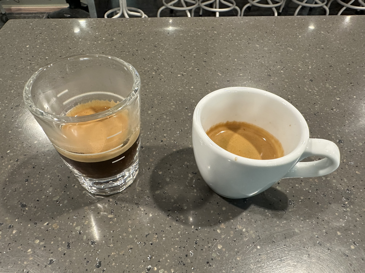 에스프레소는 추출 시간에 따라 리스트레토(짧은 추출 시간, 적은 양), 에스프레소(보통 추출 시간, 보통 양), 룽고(긴 추출 시간, 많은 양)로 만들어진다. 맛 또한 리스트레토는 산미가 있었고, 룽고는 부드러운 맛이 강했다.