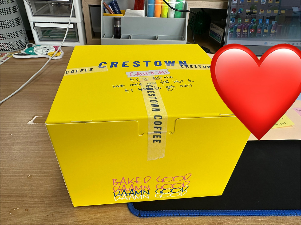 짐을 정리하고 직장을 나서려는 순간, 동료들의 응원 메모가 붙은 종이와 맛있는 스콘들이 가득 찬 상자를 선물로 받았다.