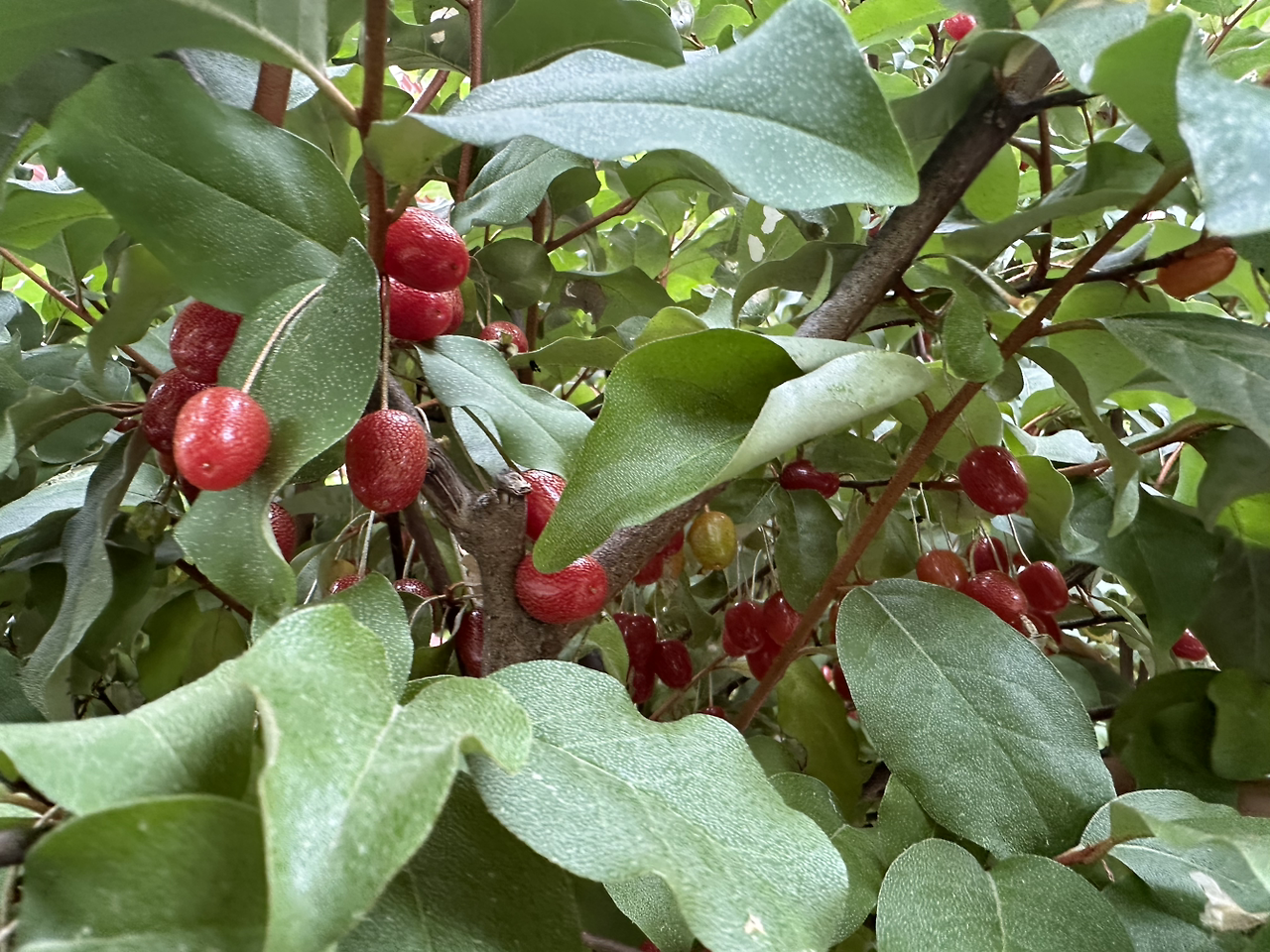 보리수나무 - 우리나라 전국의 산야에 천연 분포하고 키가 4m쯤 되며 내한성이 강하고, 내음성은 아주 약하지만 뿌리에서 질소를 고정할 수 있어 척박한 땅에서도 잘 자라는 나무다. 4~6월에 백색이나 연한 황색 꽃이 피며, 향기가 좋고 꿀이 많아 꽃이 필 때면 벌들이 많이 모여든다. 가을에 빨갛게 익은 열매에 하얀 점이 점점이 찍혀 있고, 맛은 약간 떫으면서도 달짝지근하여 먹을 수 있어서 옛날에는 임금에게 진상도 했다. (네이버 지식백과)