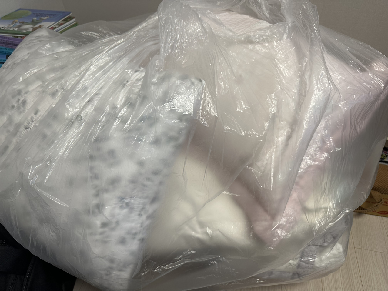가장 먼저, 우리 집은 세 가족이라 침구류가 매우 부족했다. 다섯 명이 추가되는 상황은 많은 침구류가 필요했다. 갑자기 부모님이 떠오른다. 언제나 장롱에는 이불과 베개가 가득했던 어린 시절의 기억이 있다. 부모님께 전화로 상황을 설명드리고 본가에 방문했다. 아니나 다를까 어머니 아버지 두 분만 사시는 곳에 침구류는 수십 명이 써도 모자람이 없을 정도로, 그것도 새것들로 가득했다. "어른들은 원래 그래"라고 하시는데, 어쨌든 감사하게 침구류를 차에 가득 싣고 집으로 돌아왔다.