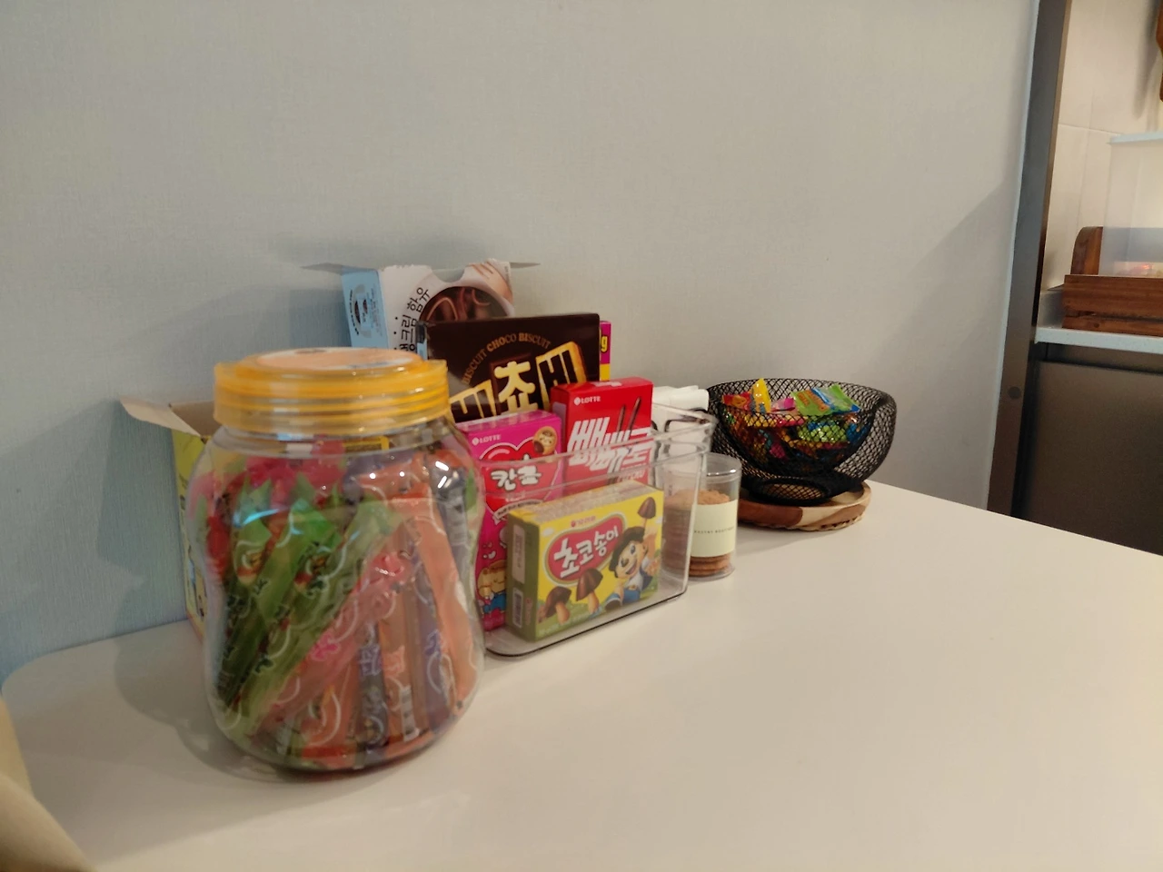 마지막으로 중요한 것이 먹을거리다. 식사는 주로 외부에서 하겠지만 집에서 머무르는 시간에 편하게 먹을 수 있는 간식이나 과일 등을 준비했다. 인터넷을 검색하여 일본인들이 한국에 오면 사가는 간식들을 근처 마트에서 준비했고, 과일도 무엇을 좋아하는지 몰라서 다양하게 사두었다. 주변에 일본에서 오랫동안 생활한 지인들이 있는데, 일본 사람들이 타인 집의 냉장고 문을 열고 자유롭게 먹는 것이 어려울 것이라는 조언을 해주었다. 되도록 간식을 식탁에 놓고 포장을 뜯어놓으면 부담이 덜할 것 같다는 생각으로 세팅해 두었다.