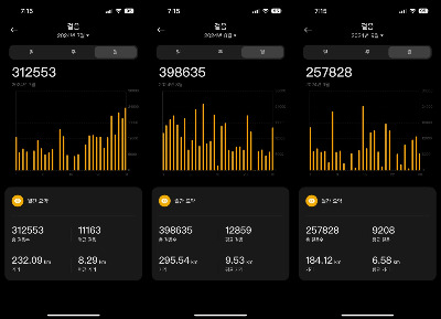 위 세 가지의 계획을 세우고 운동을 시작했다. 아들이 사놓고 쓰지 않는 스마트워치를 사용해서 기록하며 누적된 데이터를 보는 것은 동기부여도 되고 재미도 있었다.