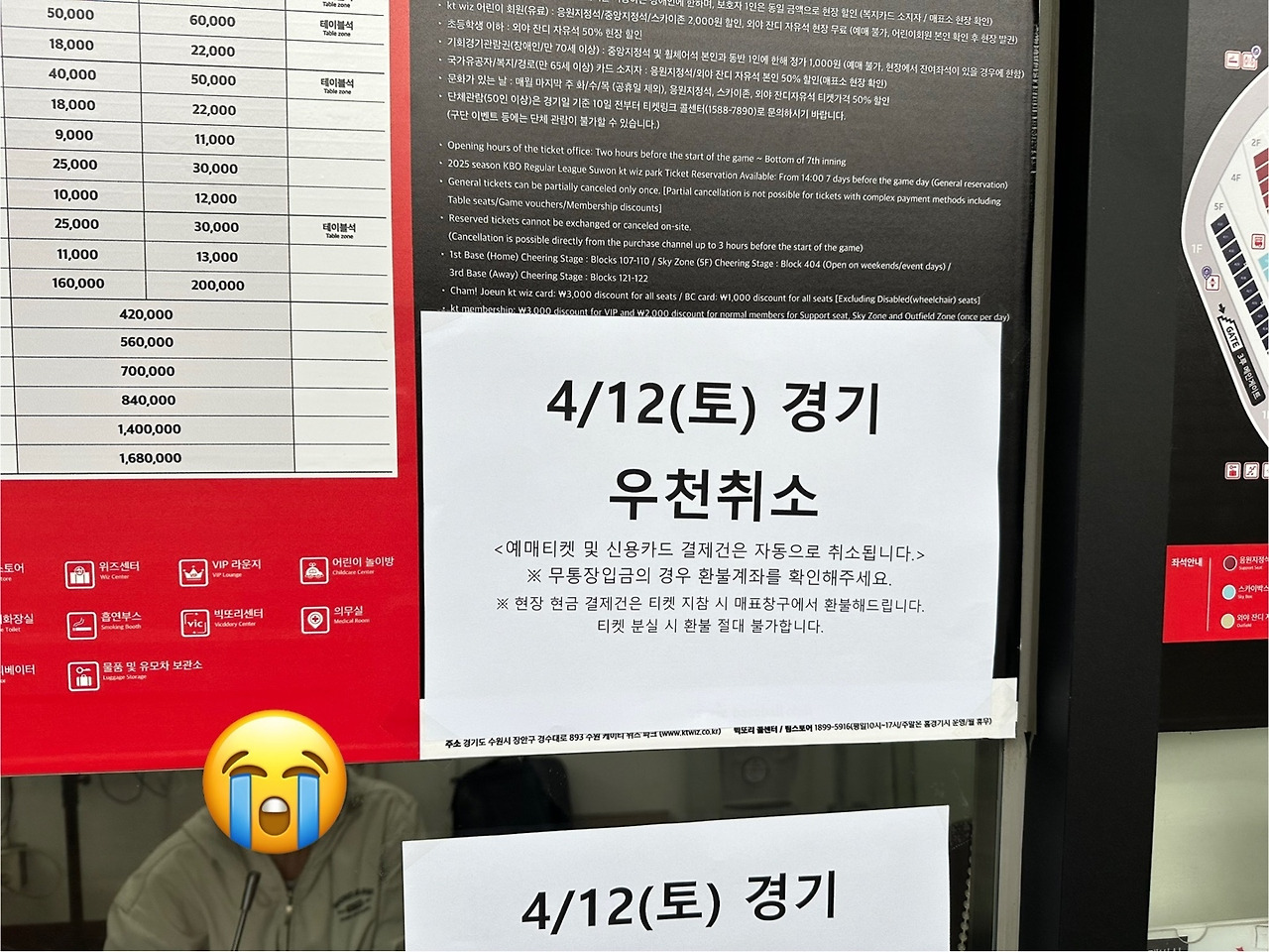 우천 취소는 경기 시작 시간인 14시 전에 결정됐다. 씁쓸한 아이의 표정과 걸음걸이가 눈에 들어온다. 슬픔을 걸음으로 표현할 수 있다는 것을 처음 알았다. 이제는 후 폭풍을 감당할 시간이다.