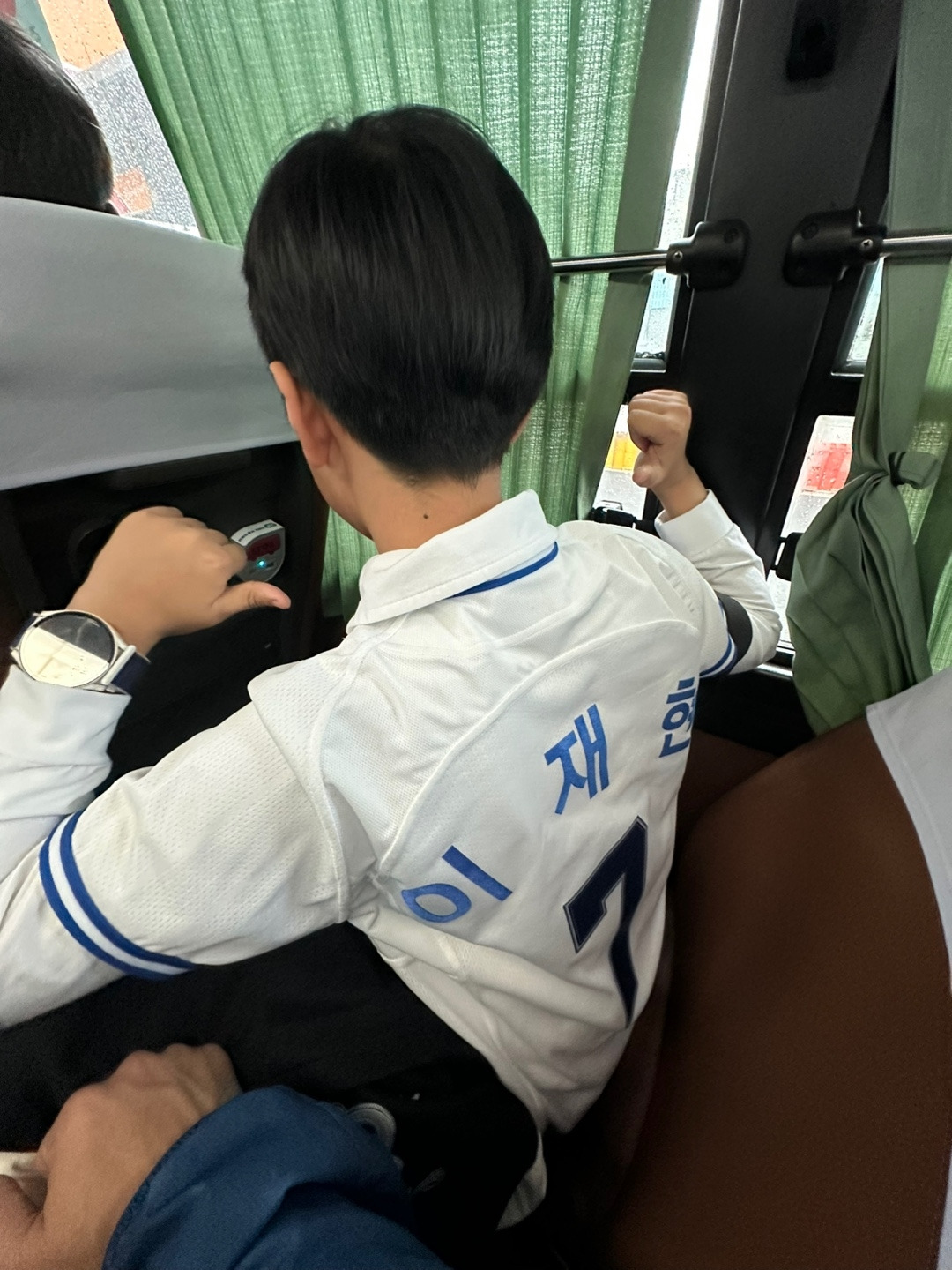 버스 대기 시간이 길었지만 아이도 신났다. 시즌 시작 전에 미리 주문했던 삼성 유니폼을 입고 한껏 들뜬 모습이다. 아이나 어른이나 기대감은 피로를 잊게 한다. 버스에서 오늘의 선발 투수와 그동안의 기록들을 점검하며 오늘 경기를 함께 예상했다. 아직 아기 같이 느껴지지만 어느덧 이렇게 커서 야구 이야기를 할 수 있다는 게 참 새롭다.