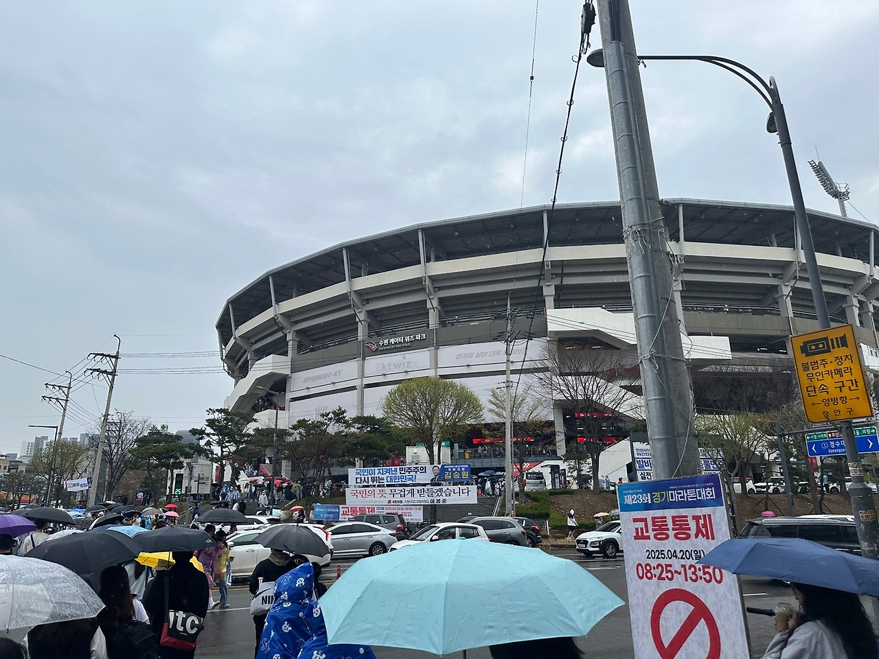 높아진 야구 열기에 시즌이 시작된 지 얼마 되지 않았는데 표가 있을까 하고 검색했더니, 웬일! 원정 응원석 앞자리에 표가 있다. 수원구장은 처음이라 주차를 검색하였더니 사전 예약시스템이다. 실패. 수원까지 대중교통으로 1시간 30분이 나온다. 대기 시간을 합치면 2시간이 되겠지만 올 시즌 첫 관람이라 백번 감당할 수 있다.