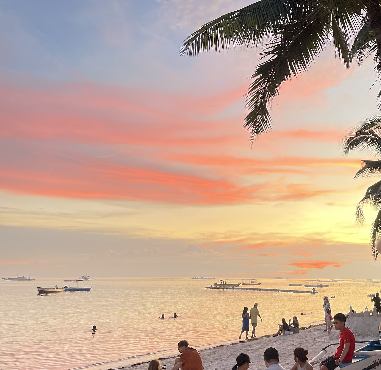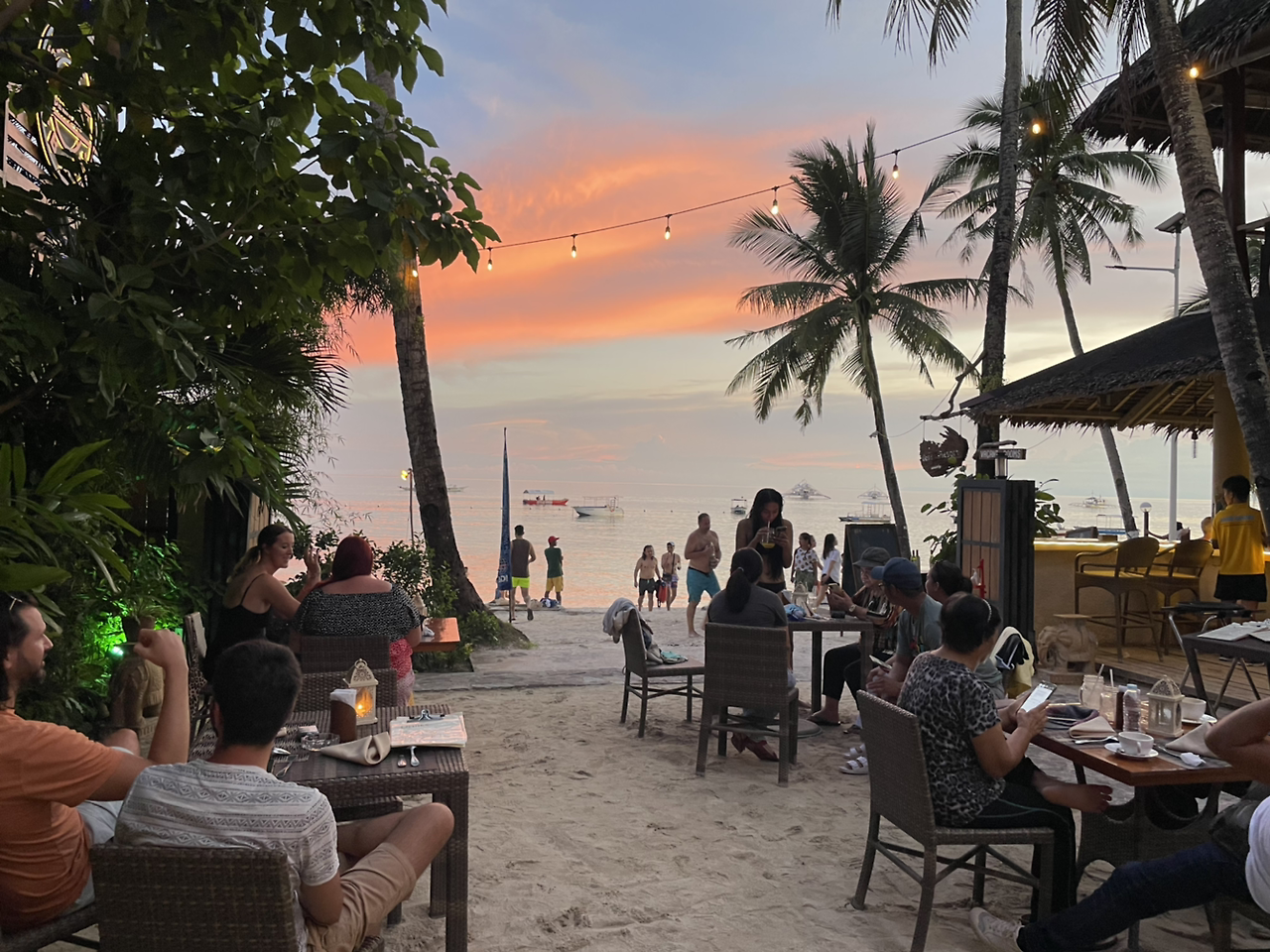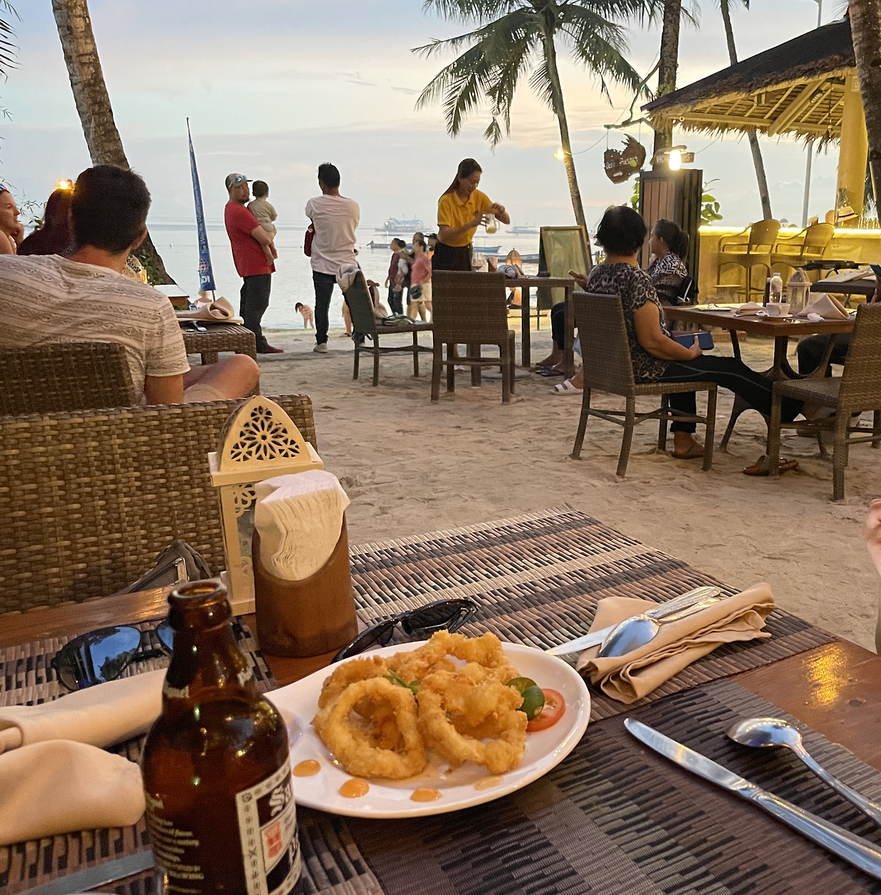 깔라마이는 필리핀 오징어튀김이다. 한국 오징어튀김 맛이었다. 맛있게 먹으며 맥주와 함께 지는 해를 바라보았다. 석양이 정말 예뻤다. 처음엔 황금빛으로 물들다가 나중엔 핑크빛으로 물들었다.