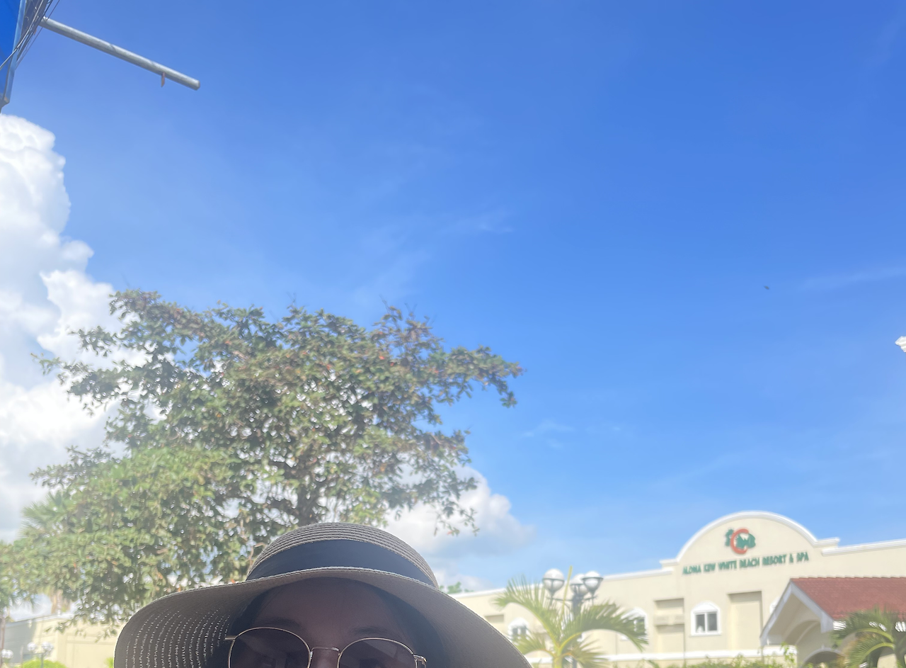 오늘 핑크 비치드레스를 입었는데 사진을 찍으니 석양과 옷색깔이 잘 어울려서 기분이 좋았다.