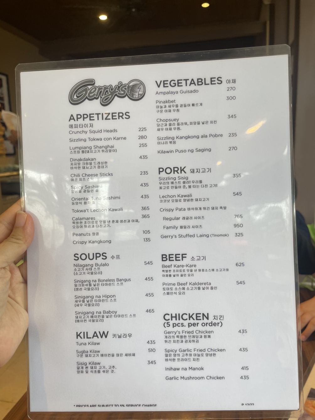 그래도 나에겐 너무너무 짜서 결국 많이 남겼다. 식사하러 두 번은 안 올 것 같다는 생각을 했다. 현금이 모자라서 카드가 되냐고 하니 카드 계산이 된다고 한다. 칠리치즈스틱 235페소, 프라이드치킨 435페소, 플레인 라이스 50페소에 서비스차지가 32.14페소가 붙었다.