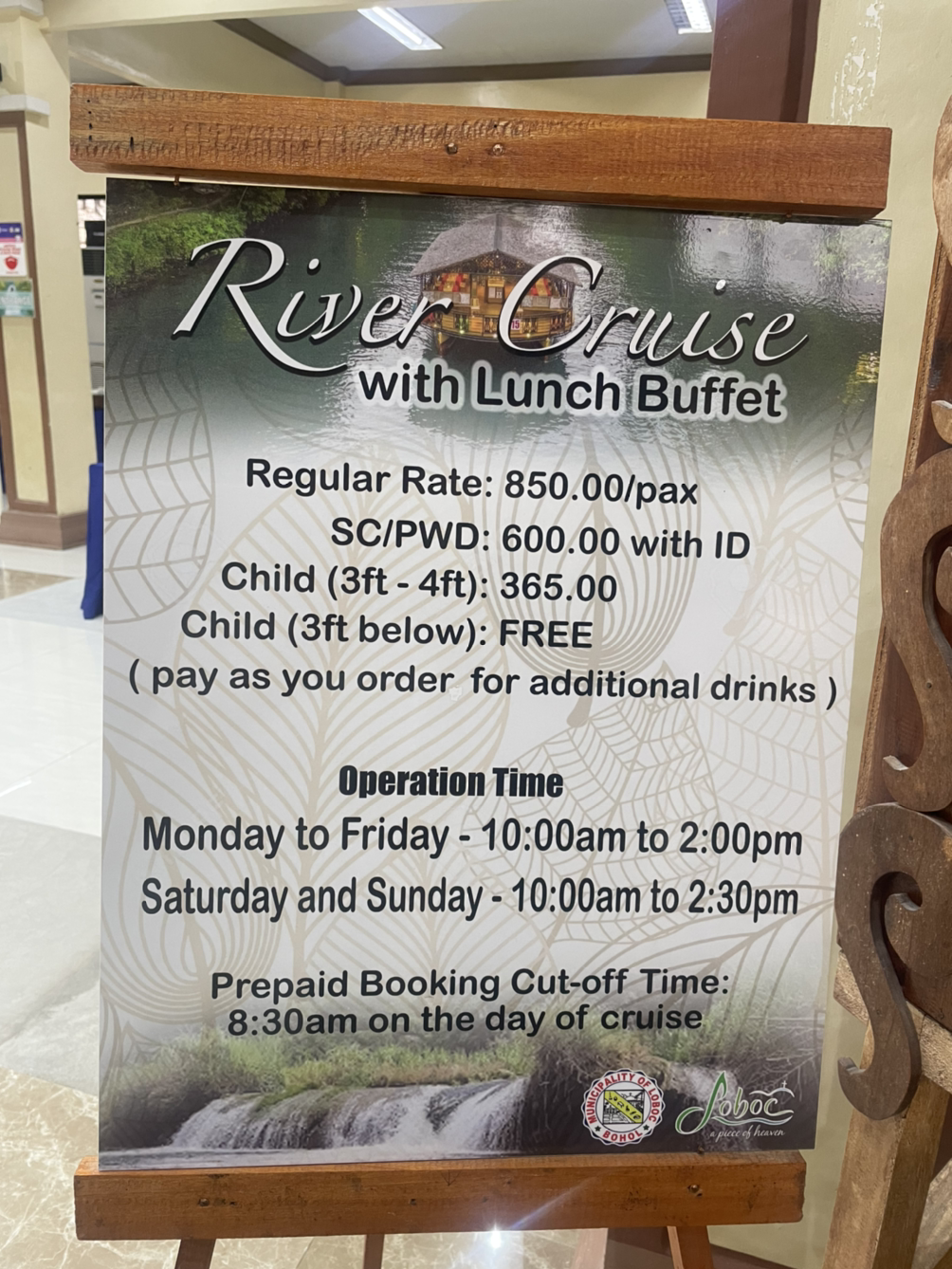 사진에 예쁜 풍경이 다 안 담겨서 아쉬웠다. 로복강 크루즈는 조금 비싸지만 보홀에 가면 한번쯤 꼭 해보길 권하고 싶다. 예쁜 풍경을 보며 선상에서 만찬을 먹는다. 맛도 괜찮은 편이고 계속 리필이 되어 음식이 모자를 걱정은 안 해도 된다. 특히 튀긴 족발과 나뭇잎에 싼 밥이 맛있었다.