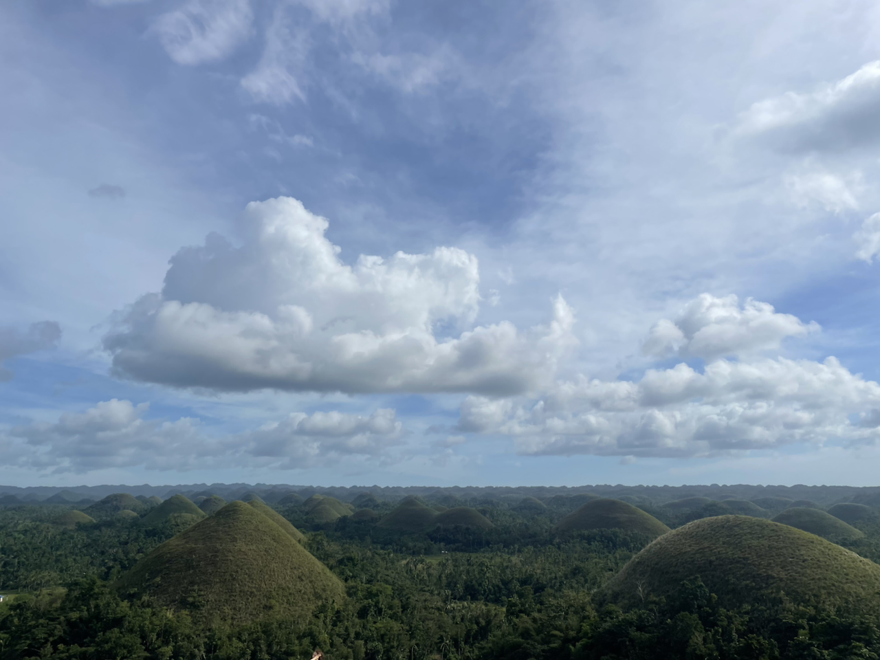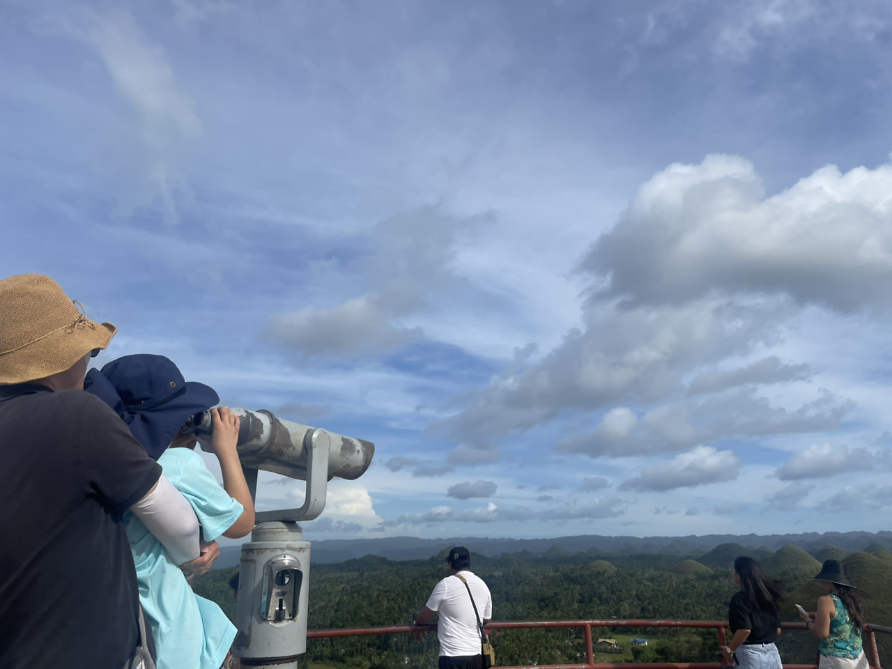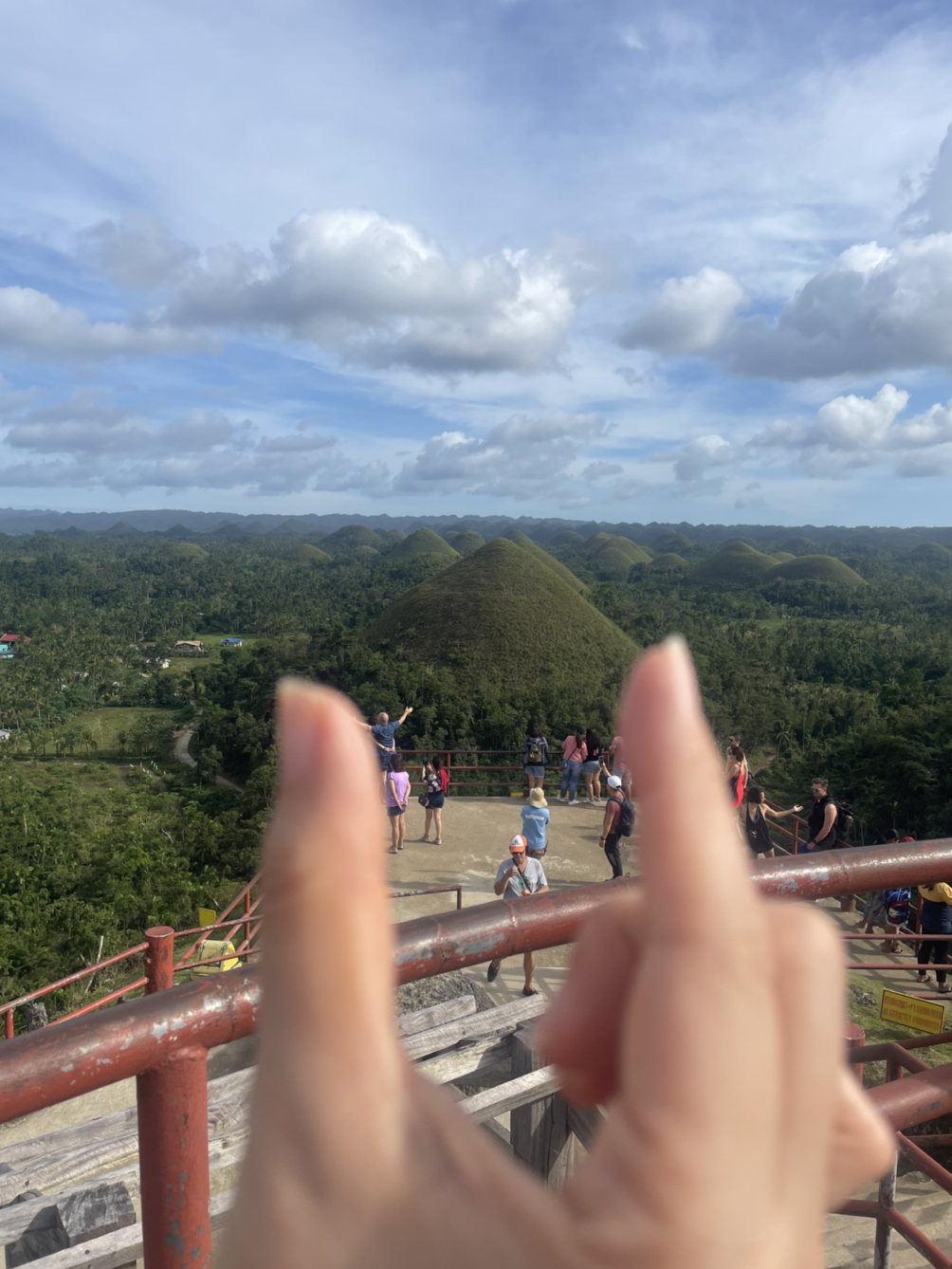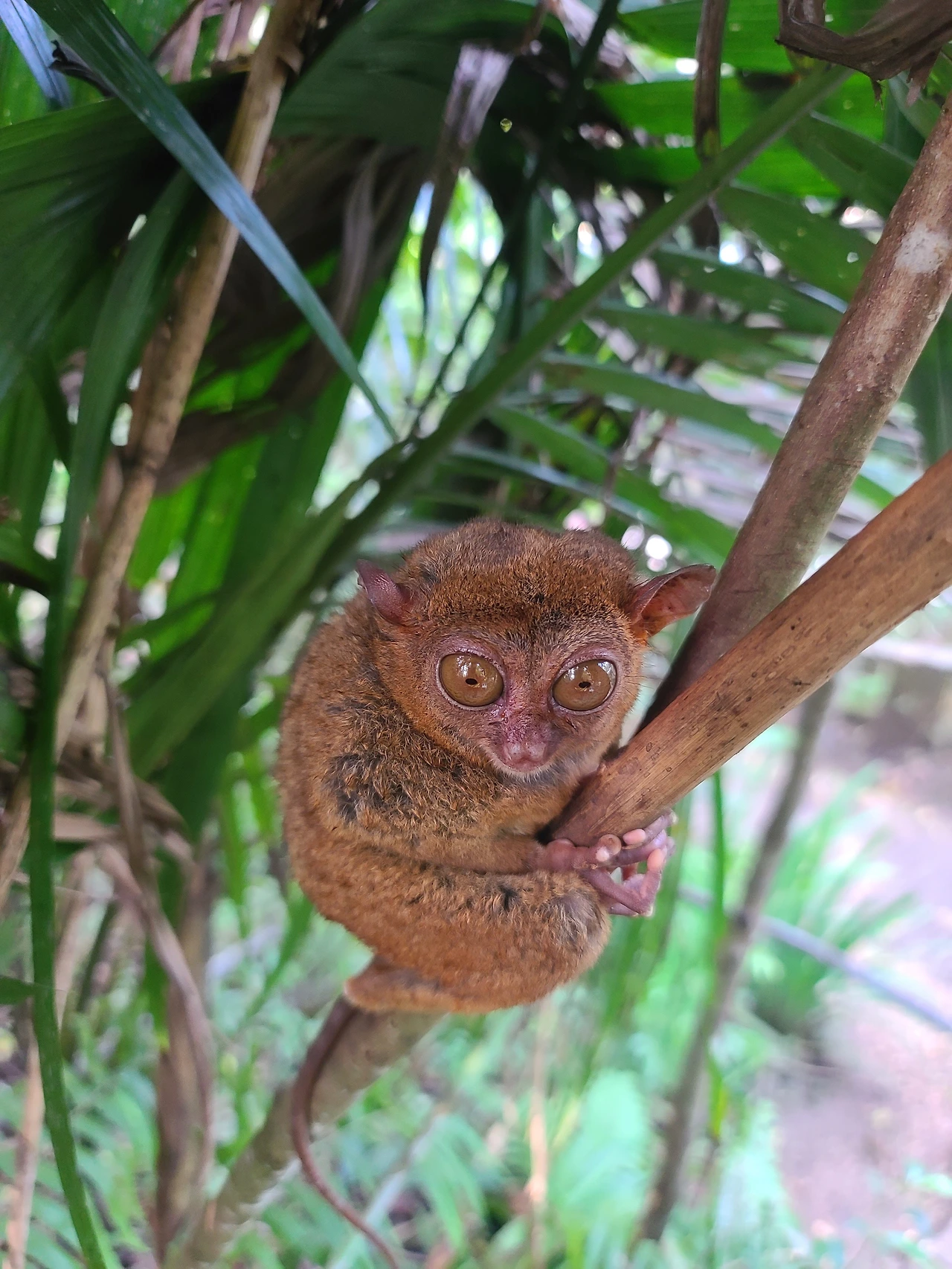 바람이 시원한 초콜릿 힐. 세상에서 가장 작은 타르시어 원숭이
