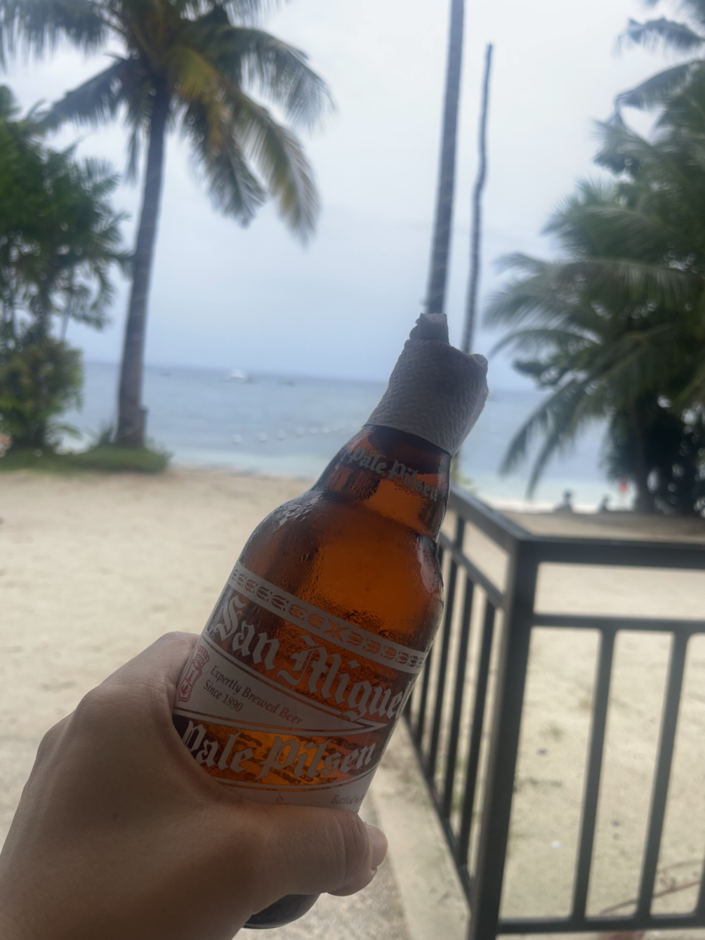 과일주스 가게에서 코코넛 셰이크를 사서 알로나비치에 자리를 깔고 앉아 치킨과 감자튀김을 먹었다. 199페소라 치킨 두 조각쯤이 있을 줄 알았는데 치킨이 무려 5조각이나 있다! 게다가 맛있다!