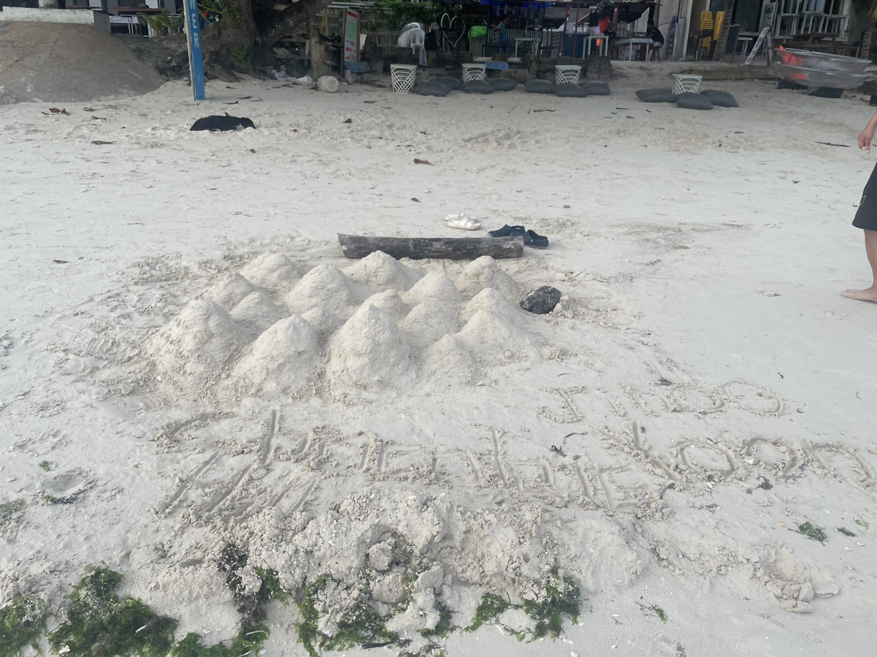 행운이는 오늘 알로나비치에서 모래성을 쌓았다. 뭘 만들까 하다가 초콜릿 힐을 만들었다. 그리고 옆에 보홀이라고 글씨도 썼다.
