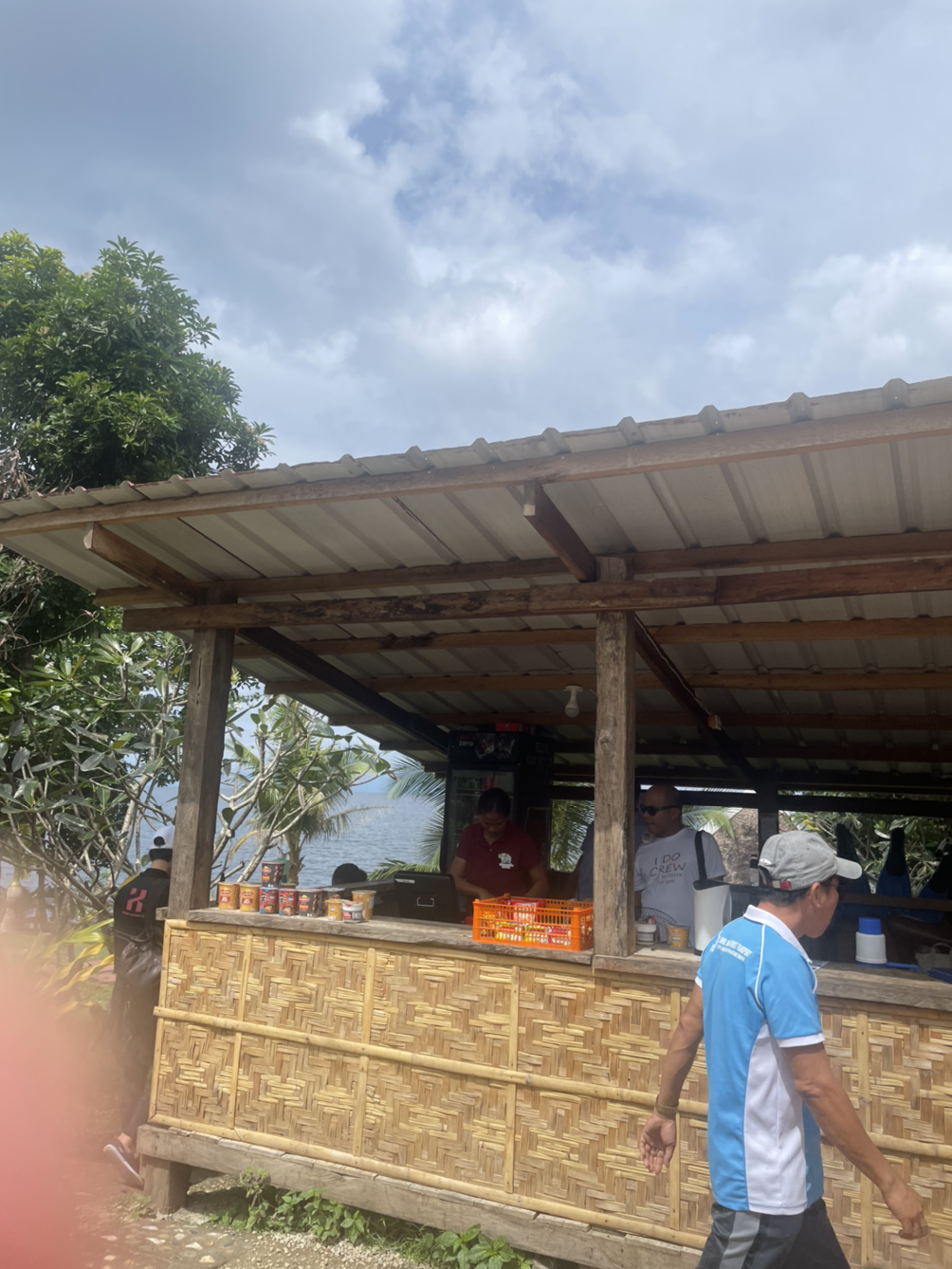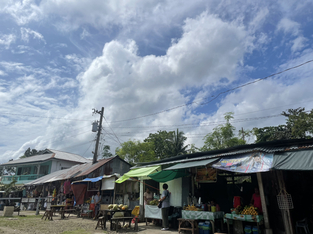 밖에 앉아 있을 곳이 있어서 앉아서 기다렸다. 기다리며 밖을 구경했다. 밖에는 보홀 기념 티셔츠를 파는 가게들과 과일쉐이크를 파는 집들이 있다. 티셔츠는 저번에 로복강투어 기념품샵에서 산 가격보다 싸다. 99페소.