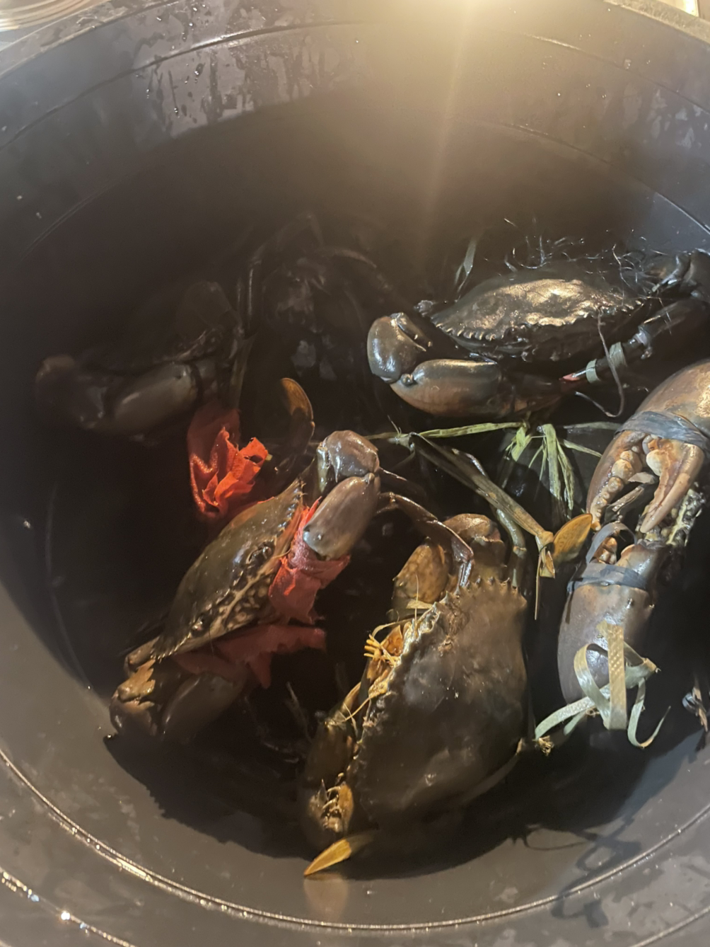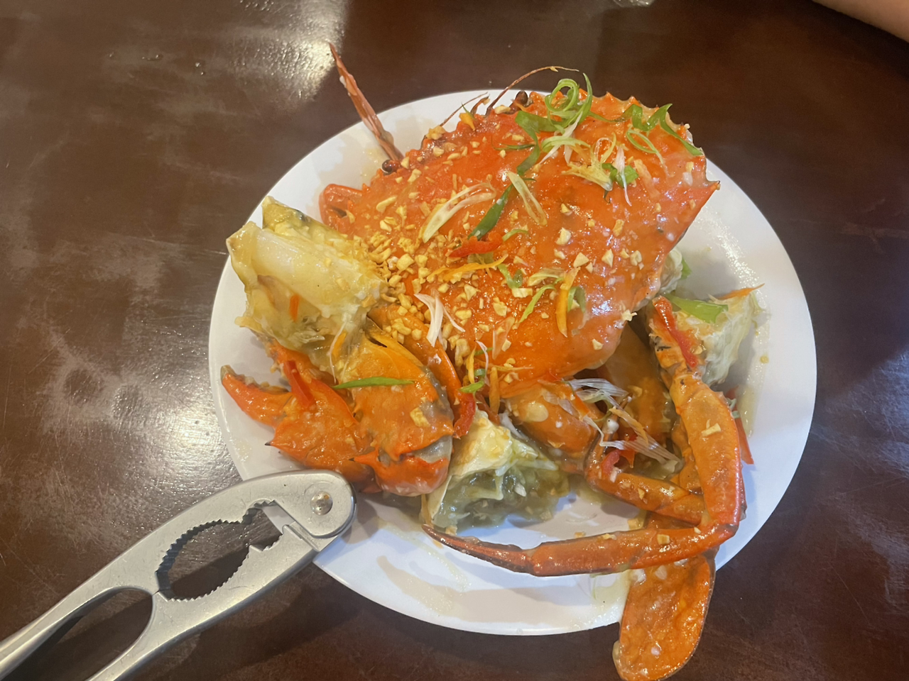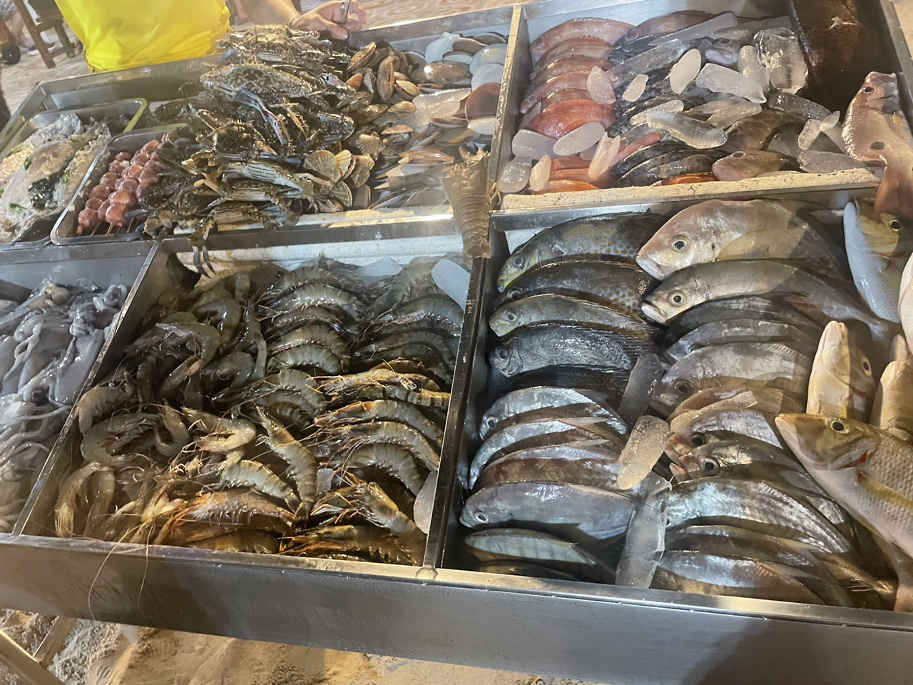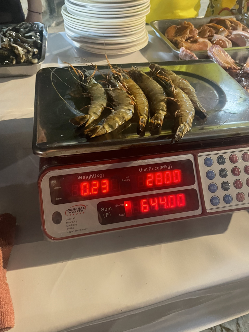 알리망오(꽃게처럼 생긴 집게발이 아주 큰 게)를 시켰는데 진짜 맛있었다. 새우도 시켰는데 새우 말고 알리망오를 먹을 걸 그랬다. 알리망오가 껍데기가 있어서 그렇겠지만 새우보다 킬로당 단가가 더 싸다. 새우도 먹고 알리망오도 먹고 하지 말고 알리망오만 먹는 것을 추천한다. 행운이는 생선구이가 먹고 싶다 해서 생선을 골랐다. 생선이 여러 종류가 있어서 뭘 먹을지 몰라서 그냥 아무거나 골랐는데 다행히 맛있다고 한다.