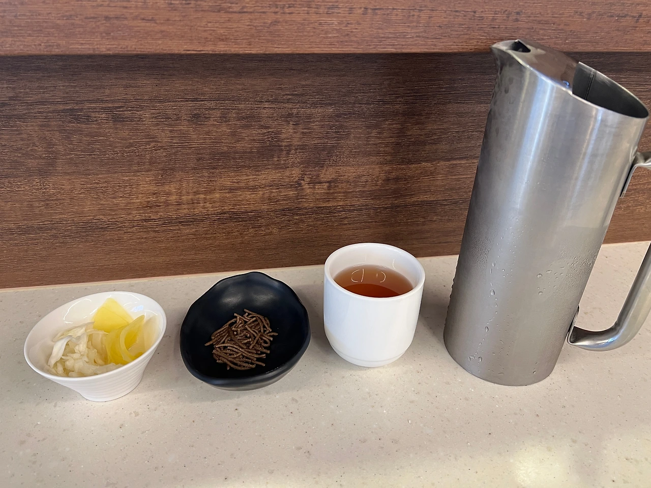 차가운 결명자차를 준다. 어렸을 때 눈 좋아진다고 엄마가 많이 끓여줬지만, 써서 싫어했었다. 오랜만이어서 맛있었다.