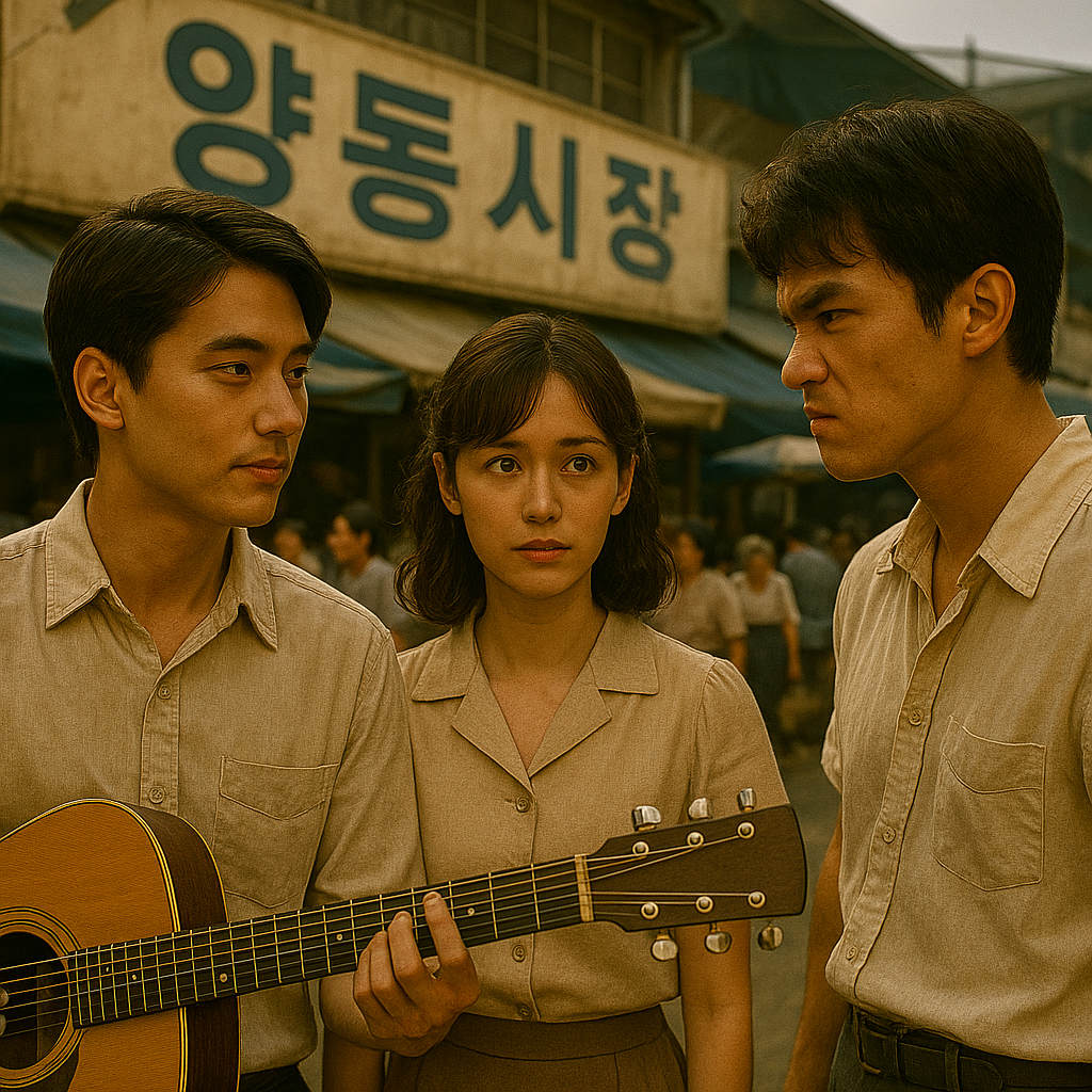 하지만 영순의 귀에는 춘재의 목소리는 들리지 않았다. 아니, 주변에 그 어떤 풍경도 시야에 들어오지 않았다. 그녀의 눈앞에는 오직 통기타를 연주하며 노래하는 광철의 모습만이 가득 차 있었다. 그건 광철 역시 마찬가지였는지 그를 둘러싼 군중 속에서 영순을 찾아내 정확히 두 눈을 마주쳤다. 영순의 새까만 눈동자와 광철의 담갈색 눈동자가 서로의 형상을 또렷이 담고 있었다.