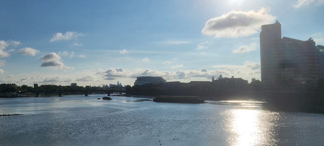 런던에 도착한 다음 날 아침, 템즈강을 따라 가볍게 달리러 나갔다. 처음엔 숙소 근처 강변만 가볍게 뛰고 돌아올 생각이었다. 그런데, 저 멀리 '런던아이'의 실루엣이 눈에 들어오자, 슬며시 욕심이 생겼다. "그래, 저 까지만 가보자." 마침 템즈강 상류 방면 우측사이드은 길이 잘 정비되어 있어 내 페이스 대로 뛰기에 제격이었다.