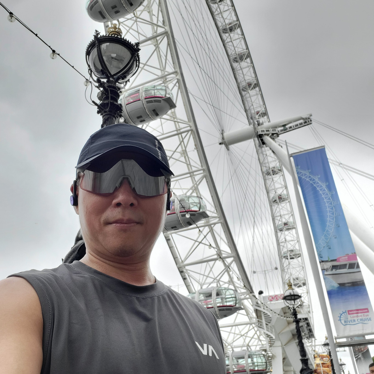 곧이어 길가에 '런던아이'가 모습을 드러낸다. 오늘 이곳까지 달리게 한 장본인. 2000년에 개관해 '밀레니얼 휠'로도 불리는 이 대관람차는 개관 당시엔 세계에서 가장 높았던 만큼 런던 전경을 내려다보기엔 충분해 보였다. (싱가포르의 플라이어보다는 조금 작아 보였는데, 런던아이가 135m, 플라이어가 167m로 30m가량 차이가 난다고 한다. 런던아이 이후 14년 뒤에 라스베가스에 200m '거대~' 관람차가 생겼다 하는데, 조금 미안한 얘기지만 거기서 그렇게 올라가서 볼 게 뭐가 있을까 싶었다. 각양각색의 호텔과 공기가 너무 좋아 또렷이 보이는 저 멀리 있는 산맥 정도)