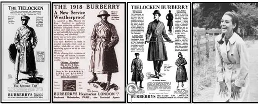이렇게 전쟁에서 꼭 필요한 기능을 넣어 만든 버버리 레인코트가 참호(Trench, 야전에서 몸을 숨기면서 적과 싸우기 위하여 방어선을 따라 판 구덩이)라는 이름으로 불리며 트렌치코트가 되었다.