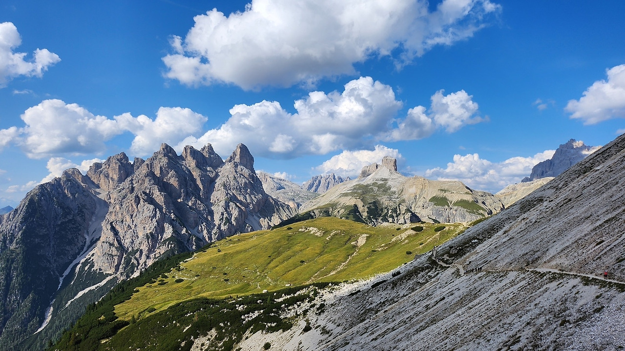 이탈리아 북동부에 있는 세 개의 독특한 모양의 봉우리 ‘트렌티노 알토아디제’ 주에 위치한 돌로미테 - 이탈리아 속 작은 오스트리아 오늘의 일정은 Auronzo 대피소 2320m에서 Tre Cime를 반시계방향으로 돌아오는, 10km - 5시간의 코스. - 이탈리아 북동부 남티롤지방에 속하는 돌로미티는 높이 3천 미터가 넘는 18개의 암봉과 41개의 빙하 등이 거대한 산군을 이루고 있는 유네스코 자연유산으로 지정.