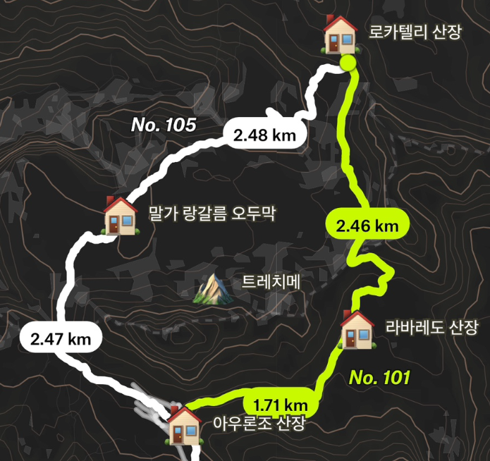 등린이도 쉽게 갈 수 있는 코스 : 101번 코스에서 시작해서 로카델리 산장까지 찍고, 101번 코스로 회귀