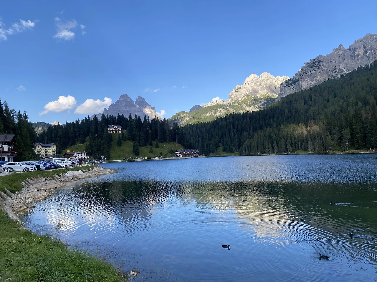 산을 내려오는 길에 가장 가까운 곳에 위치한 ,“Lago di Misurina” 미주리나 호수를 들러보세요.