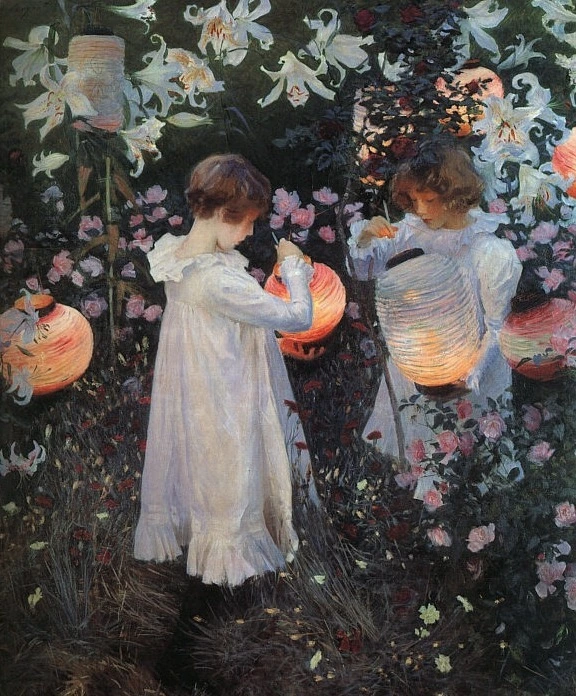 한없이 사랑스럽다. 보고만 있어도 좋다는 그림들은 이런 그림이겠구나 싶다. 막 해가 지고 난 저녁, 소녀들이 정원에 종이 등을 밝히고 있다. 두 소녀 모두 짧은 단발에 어두운 갈색 머리다. 꽃잎처럼 너울 거리는 커다란 주름이 잡힌 흰 면 드레스와 검은색 스타킹까지도 사랑스러움을 완성하기 위해 준비되었다. 소녀들을 둘러싼 백합과 카네이션 그리고 장미를 보고 있노라면 짙은 꽃내음이 밀려올 듯도 하다. 하루 중 해가 막 진 이 시간대를 프랑스어에서는'블루아워'라고 부른다. 또 다른 명칭은 매직아워. 이 시간대 하늘은 완전히 어둡지도 밝지도 않다. 해가 꼴깍 넘어간 직후. 어느새 푸르스름한 빛이 세상을 덮었나 싶으면 곧이어 붉은색, 노란색, 파란색, 보라색 등 단어로 형용할 수 없는 여러 색깔이 순식간에 하늘을 뒤덮곤 사라진다. 하늘빛이 땅위의 모든 색을 압도하는 이 시간은 그 빛들을 바라만 봐도 특별한 의미 부여하게 되는 매직아워다. 이 시간 대 여름꽃 향기는 더욱 매우 강하게 느껴진다니, 만물이 민감해지고 다른 차원의 공간으로 이동하는 시간대인 것 같다.