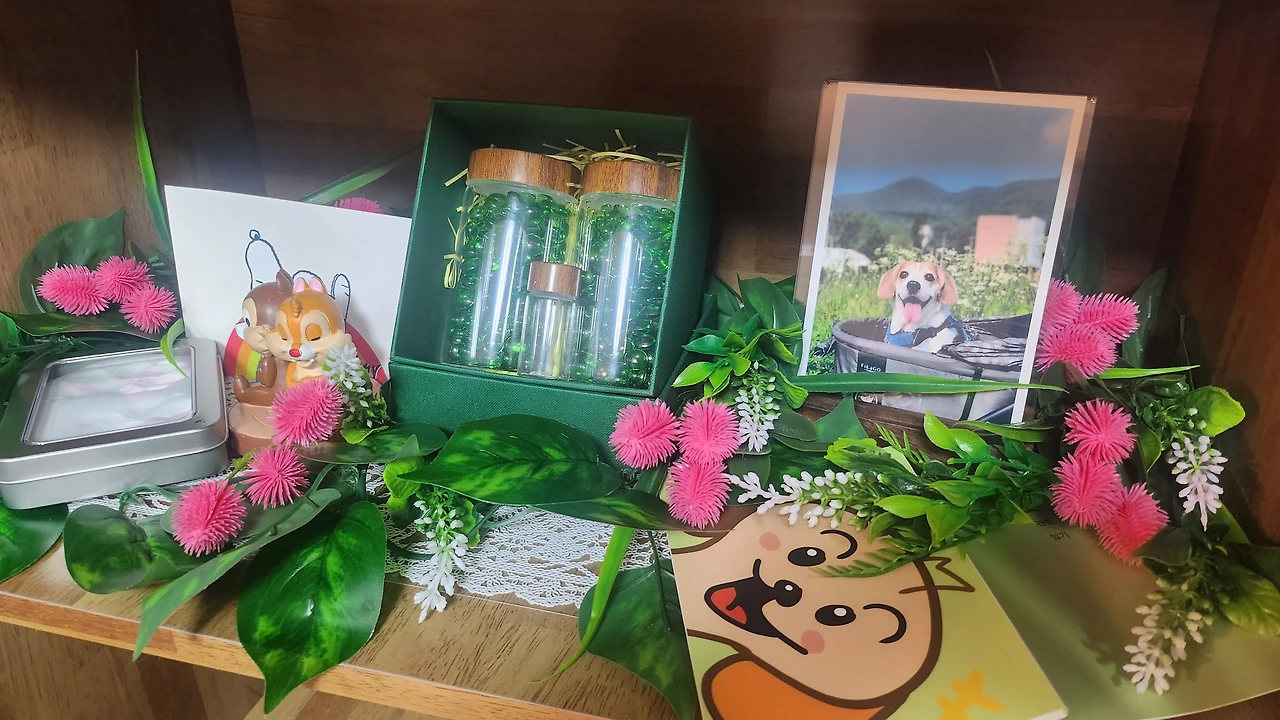 조화, 엽서 등... 여러 가지 물건으로 아이만의 공간을 꾸며주니 가슴에 통로가 생겨 시원한 바람이 넘실대는 듯한 감각을 느꼈다. 떠났음에도 이런 기분을 느끼게 해주는 아이에게 고마웠다.