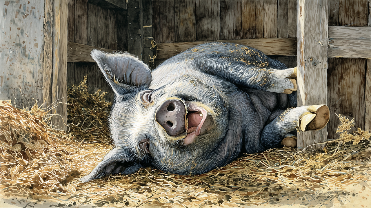 돼지는 뚱뚱한 뱃살을 출렁대면서,