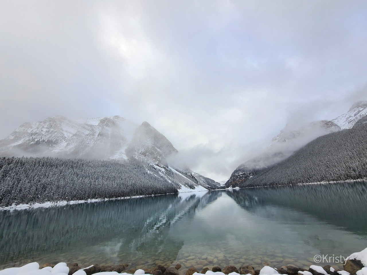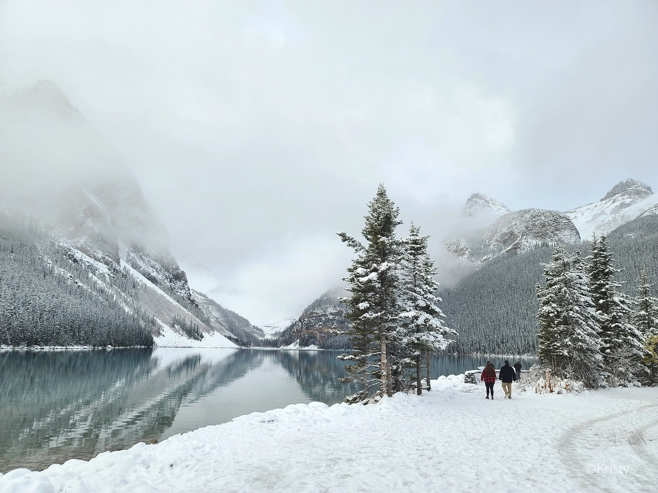 이번 여행 중 가장 기대되는 레이크 루이스. 눈이 오는 바람에 거울 호수는 볼 수 없지만, 그 설경 또한 상상만 해도 절경이다. 아직 내 마음의 동심이 남은 걸까, 눈이 가득한 호수 풍경과 크리스마스트리 마냥 눈이 소복이 덮인 호수를 상상하니, 마치 영화 ‘겨울왕국’에서의 한 장면처럼 여왕이 동생인 안 나와 어디에선가 스케이트를 타고 우리를 맞이할 것만 같은 설렘이 들었다.