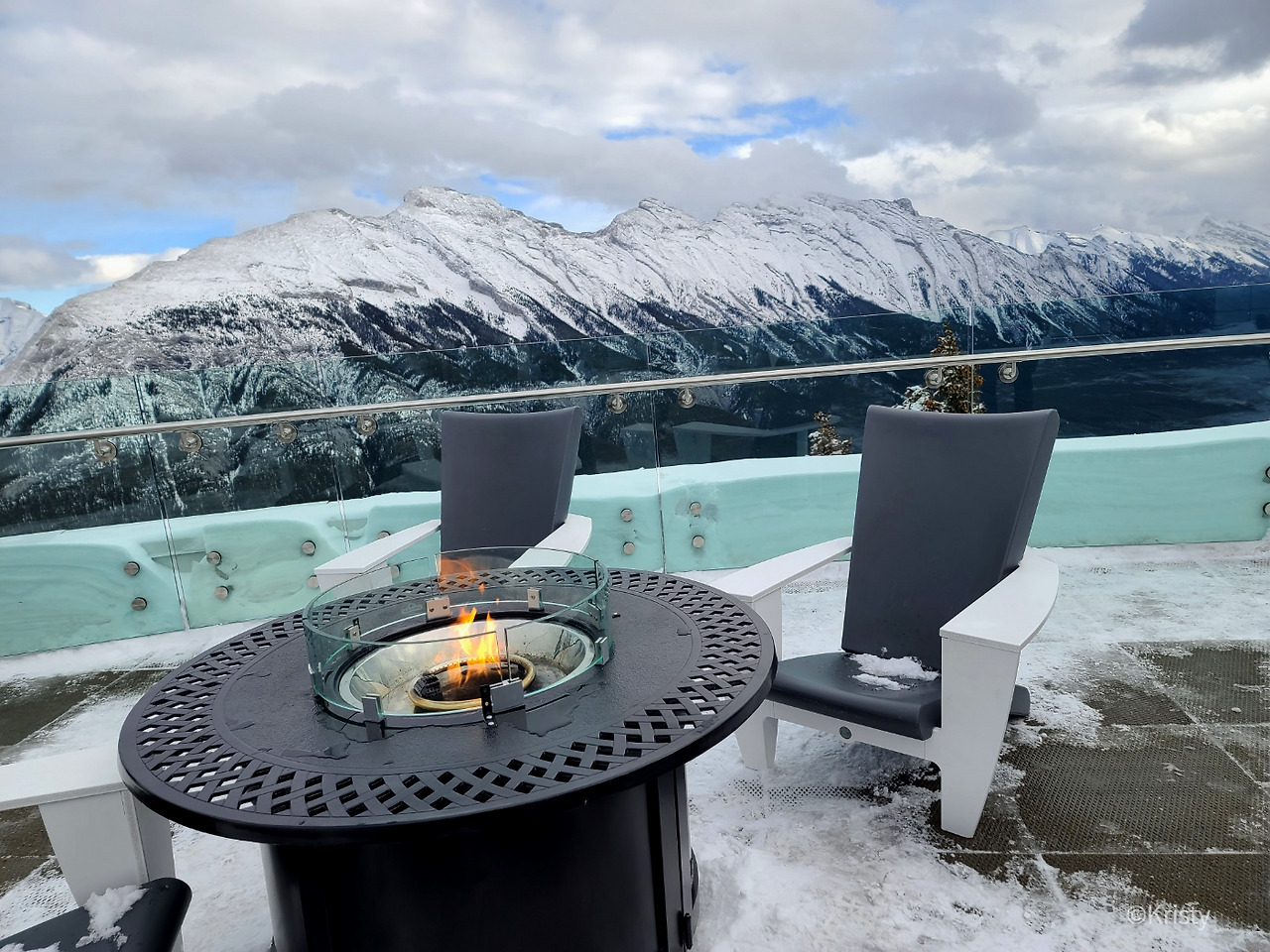 커튼을 걷은 창 밖 풍경이 만년설처럼 봉우리가 가득히 눈으로 덮인 록키 산맥이 동트기 전 푸르스름한 이른 아침의 장관을 보며 기상할 수 있는 곳이 캔모아이다.