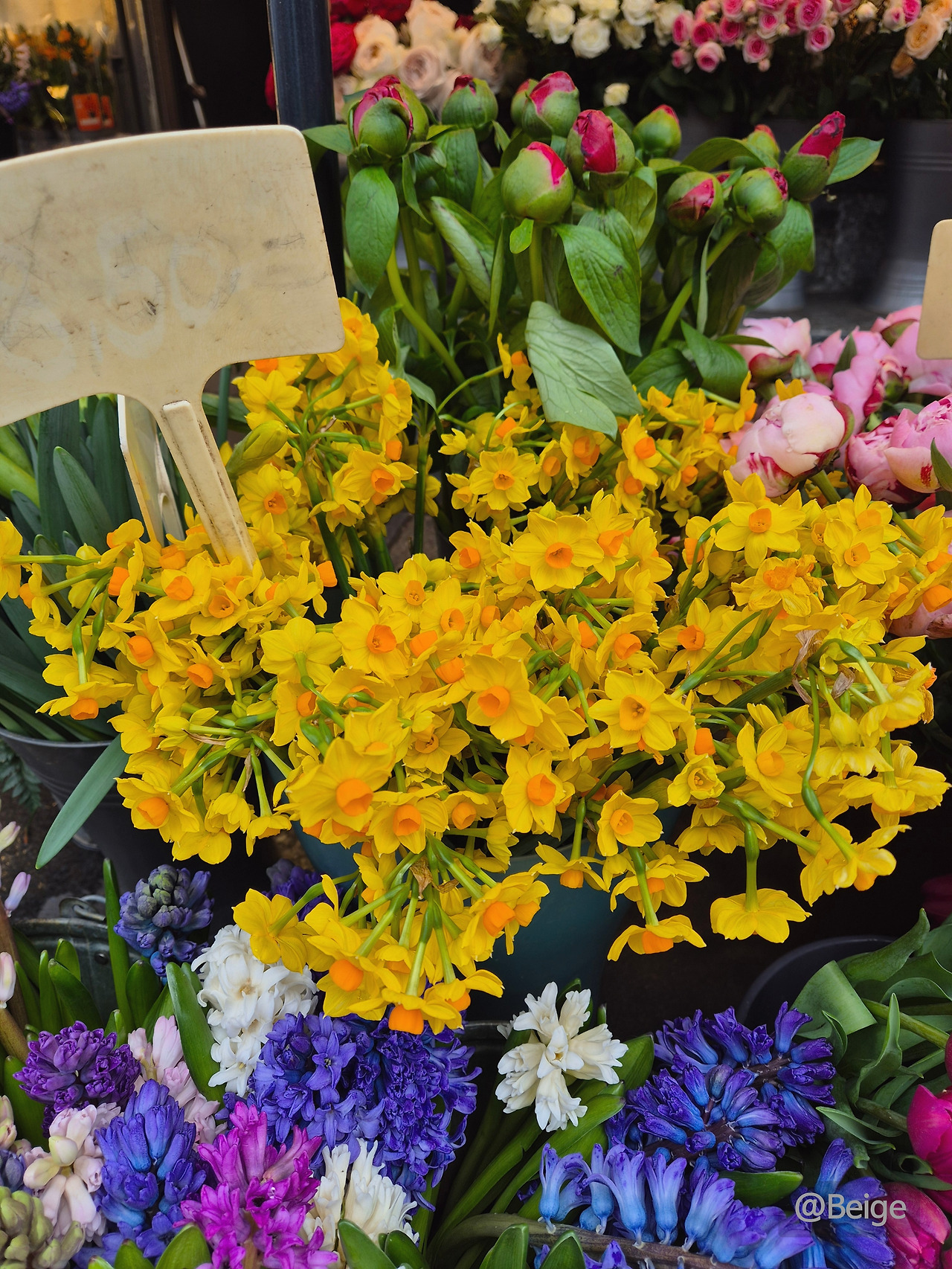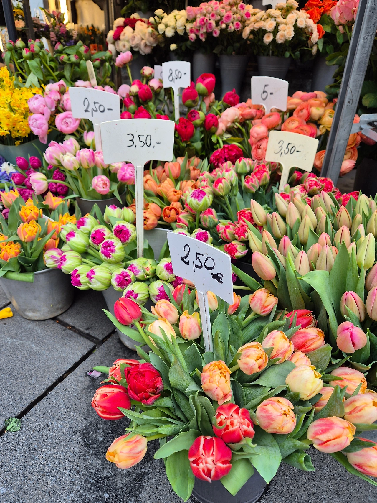 세찬 소나기와 찬바람이 오스트리아 케른트너거리 꽃가게 앞에 놓여진 수선화, 튤립들을 시샘하듯,