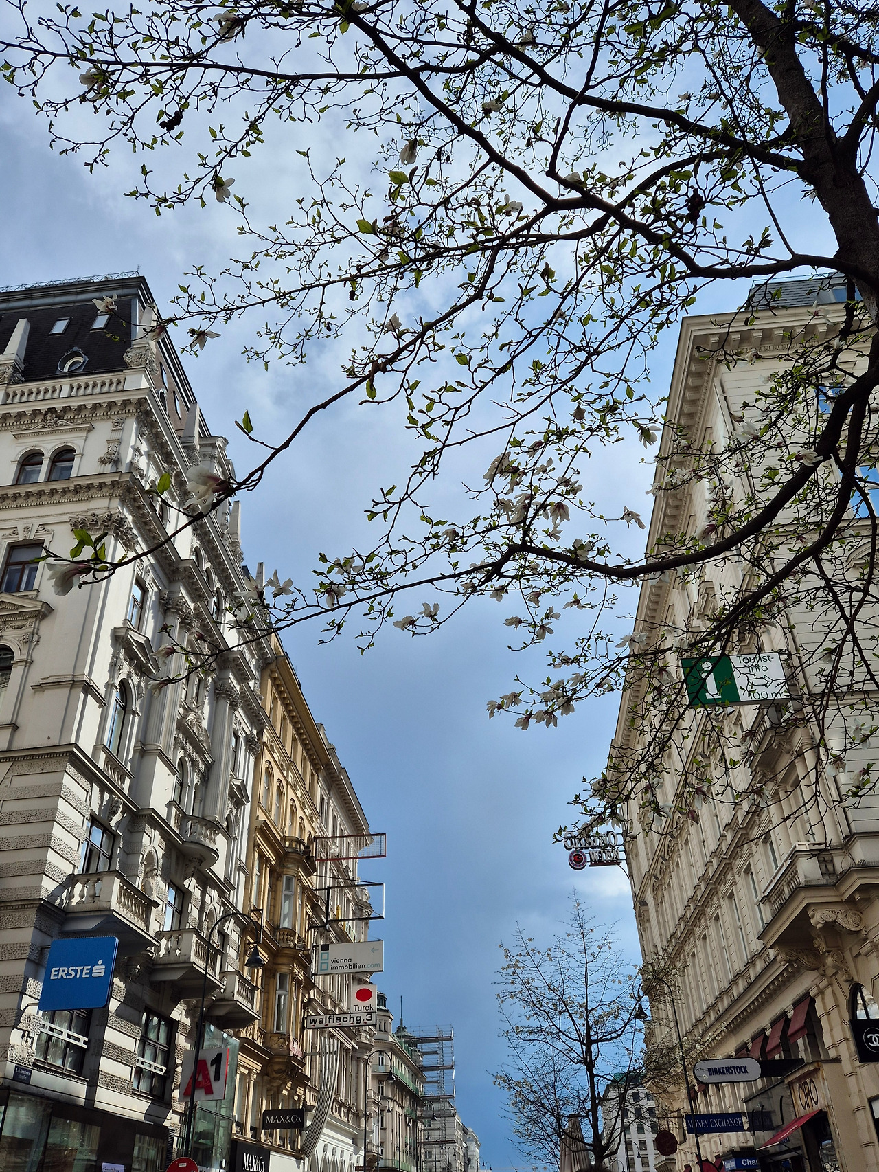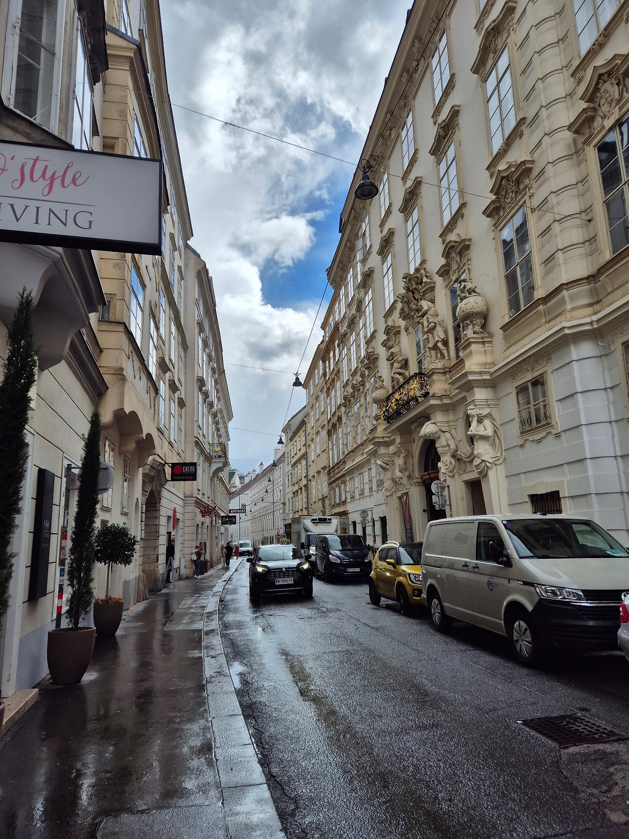 하늘 색깔에 따라 달라지는 비엔나 거리를 감상하네요.