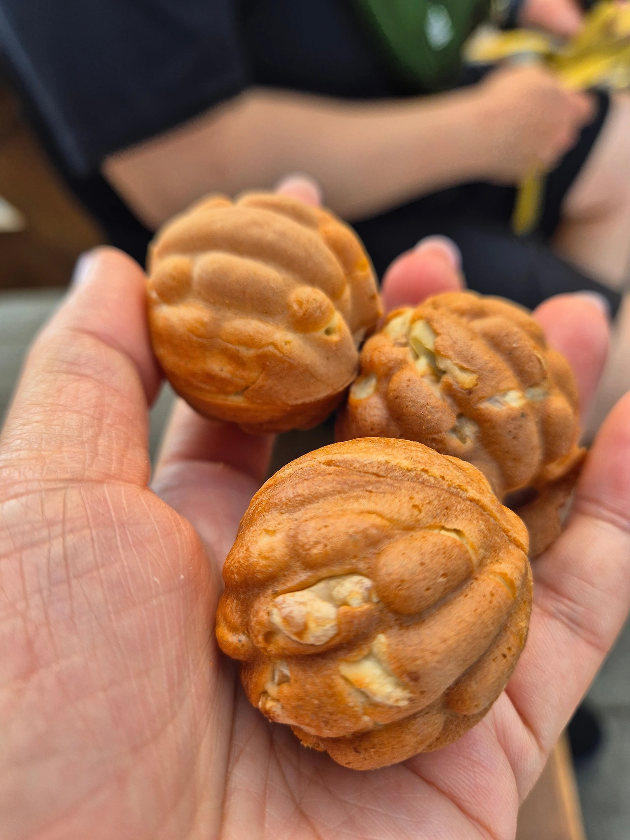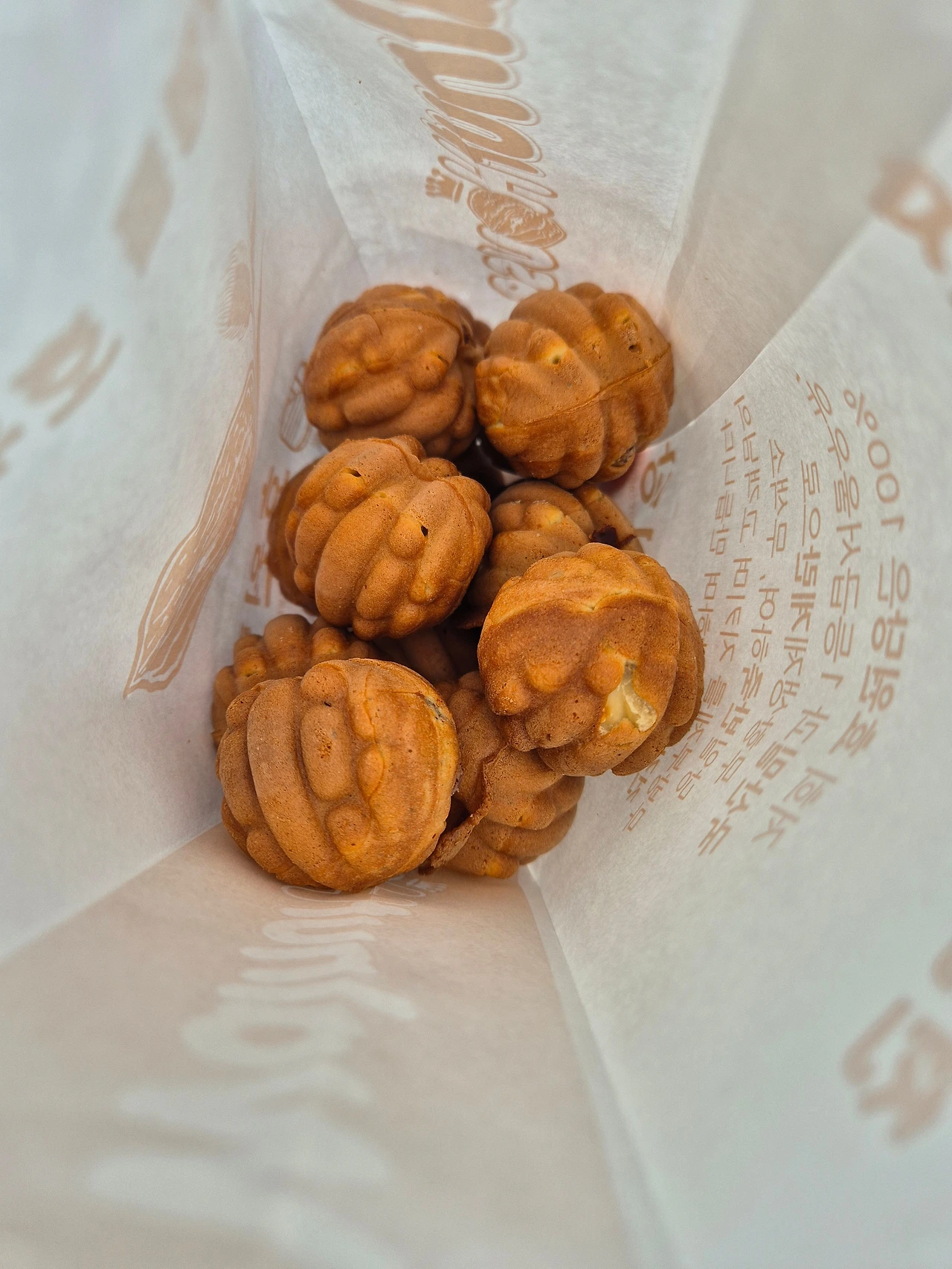 저마다 호두과자를 먹는 방식은 조금씩 다릅니다. 갓 구운 호두과자를 손에 쥐면 그 따뜻함이 손끝으로 전해지고, 적당히 바삭한 겉과 촉촉한 속을 한입 베어 물면 달콤한 팥소가 입안 가득 퍼집니다. 이때 고소하게 씹히는 호두 알갱이는 그 맛을 더욱 풍부하게 만들어주지요. 어떤 사람은 뜨겁게 구워진 것을 식기 전에 후다닥 먹는 걸 좋아하고, 어떤 사람은 식은 호두과자를 집에 가져가 전자레인지에 살짝 돌려 다시 따끈하게 데워 먹기도 합니다.