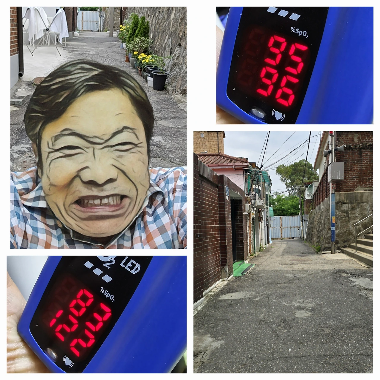 숨이 차서 산소포화도를 측정해 봤더니 83에 혈압이 122였다. 산소포화도는 일반적으로 90 이상을 정상으로 본다. 앰부백을 가지고 호흡 운동을 했다. 산소포화도는 95로 회복되었다. 잠시 나가서 걷는 게 뭐가 힘드냐고 할 수 있겠지만 나에게는 많은 결심이 필요한 일이었다.