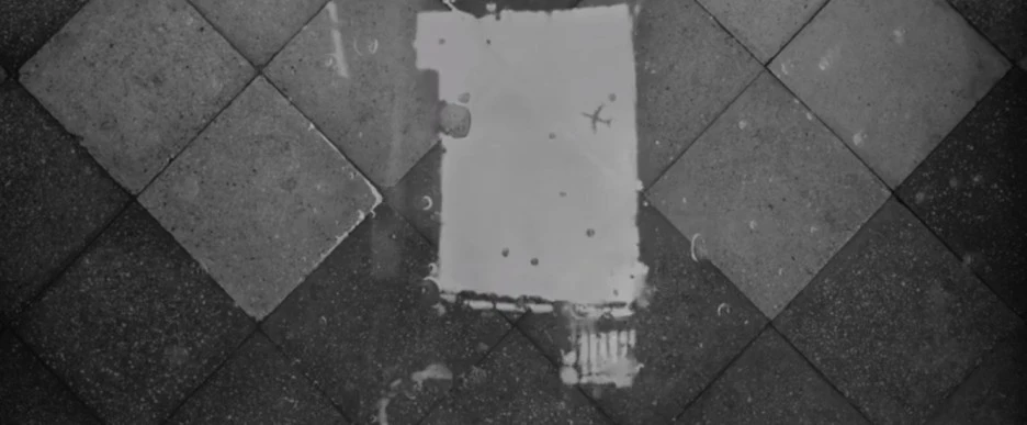 앞서 얘기했듯, 클레오가 땅에 물을 뿌리게 되고 화면에는 물이 휩쓸려 들어오게 된다. 그리고는 그 물을 통해 바닥은 하늘 위에 떠있는 비행기를 텅 빈 스크린에 영화가 비치듯 비추게 된다.