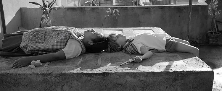 그는 맥락, 즉 배경으로 상황을 대체시키며 객관성을 강조하게끔 연출한 것이다. 또한 카메라를 상, 하로 움직이는 틸팅 기법을 오프닝과 엔딩에만 응용하여 설계한 구조적 조응은 카메라에 담긴 쿠아론이 어머니처럼 사랑했던 리보(극 중 클레오)에 대한 시선으로서 탁월한 영화적 언어를 선사한다.