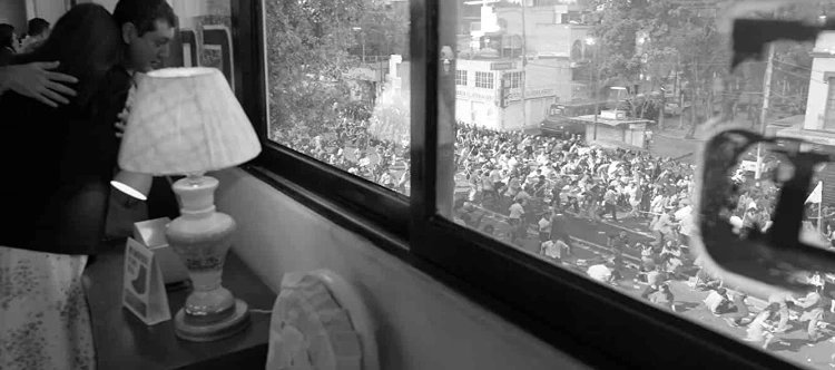 이러한 방식으로 영화의 존재감은 점점 크고 깊게 확장된다. 이 특정 연계는 현실에서 일어날 것 같지 않던 알코 나소 대학살이 실제로 일어나게 되는 상황을 그리며, 영화 내에서 가장 드라마틱한 일들에 대한 빌드업의 역할을 수행하게 된다. 클레오의 아픔(개인적인 아픔)으로 시작할 때 영화의 존재감이 작으며, 사회적인 상처로 확장되었을 때 그 존재감이 확대되듯이, 감독은 어쩌면 가장 광범위한 사회적 상처도 결국 개인의 아픔과 연결고리를 형성하고 있을 것이라는 말을 하는 것 같다. [로마]는 사실 3번으로 그치지 않고 총 5번에 걸쳐 영화라는 매개체를 관객들에게 보여주고 있다. 이 영화의 전체적인 맥락이 오프닝과 엔딩으로 조응하듯이 첫 번째와 마지막으로 영화라는 매개체를 담아내는 쿠아론의 방식은 클레오라는 인물의 신분과 지위의 변화를 내포한다.