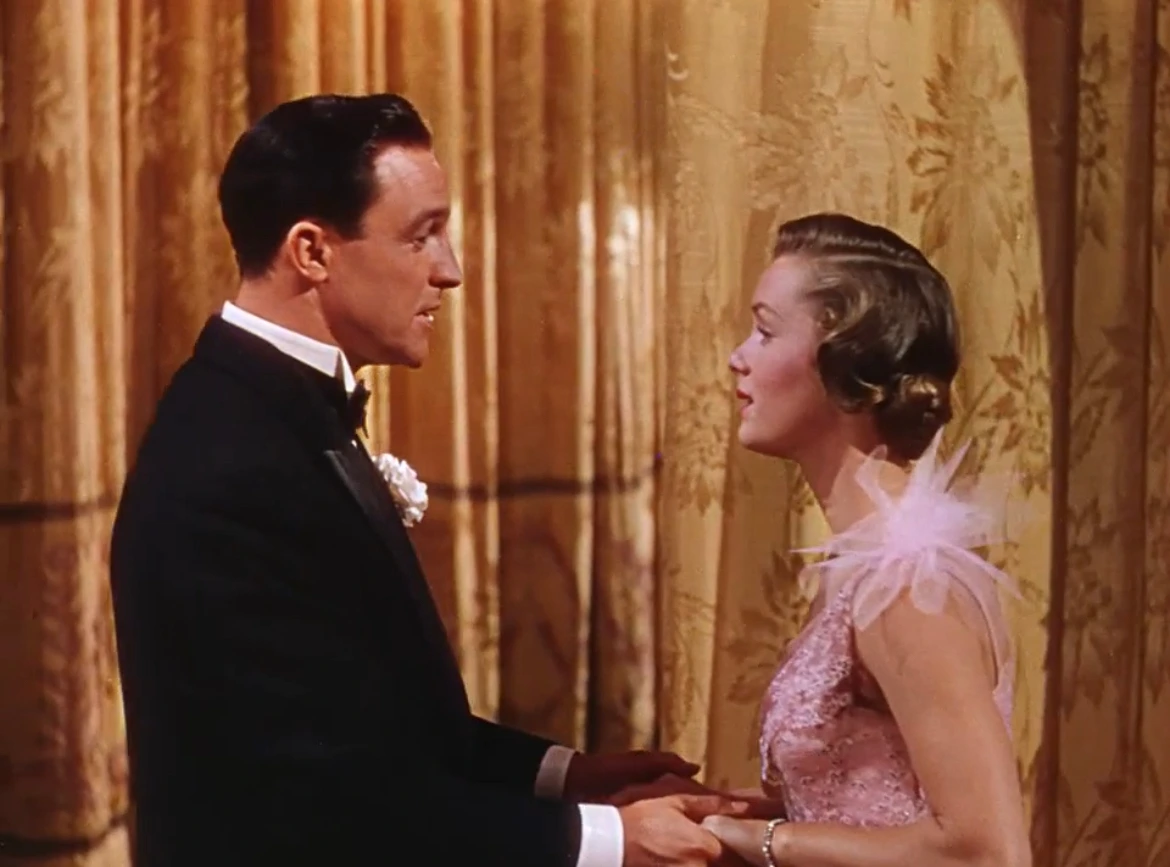 시그리드 크래크아우어는 그의 비평 “오락의 추종": Cult of Distraction”에서 영화관에 사회, 그리고 세속적 종교성을 결부하여 극장이라는 장소를 추상적 예배당에 빗대어 표현한 적이 있다. 이와 유사하게 [사랑은 비를 타고]에서는 극장을 예식장으로 묘사한다; 영화의 시작과 끝, 두 개의 극장 시퀀스는 이 개념을 외부화한다. 첫 번째 극장에서 록우드는 리나와 함께 관객(하객)들을 맞이하는데 여기서 그는 리나가 입을 여는 것을 방해하고 조화롭기를 거부하며 독립적인 자세로 스스로를 대변한다. 하지만 영화의 종장에 다다르면 앞서 말한 상황의 형국과는 정반대의 상황이 연출된다. 록우드는 극장을 뛰쳐나가는 캐시를 멈춰 세우며 침묵이라는 제약으로부터 그녀를 해방시킨다. 여기서 우리는 하나의 ‘연극’—록우드와 캐시가 극장 내에서 스크린, 또는 무대도 아닌 관객석에서 노래를 부르는 시퀀스—를 보게 되는데 이것은 록우드—영화—와 캐시—연극—의 예식일 것이다; 그들이 ‘극’을 보이는 극장에서는 ‘영화’ 시사회를 진행 중이었다, 그곳은 영화와 연극이 공존하는 문맥적으로나 물리적으로 절묘한 지점이다. 그리고 이 모든 예식을 뒤에서 지휘하는—혼을 불어넣는—인물은 다름 아닌 코스모—음악—이다. 이 예식은 완벽하게 조화를 이룬다. 그렇게 <사랑은 비를 타고>는 록우드와 캐시라는 캐릭터를 빚어 영화라는 영상예술이 연극이라는 목소리를 얻어 마침내 “진정성을 갖춘 존엄성"—Dignity with veracity—을 얻는 과정, 제약적 예술 매체에서 표현의 한계성을 타파한 예술로 도약하는 사건을 그 어떤 영화보다 화려하고 우아한 방식으로 표현해 내는 데 성공했다.
