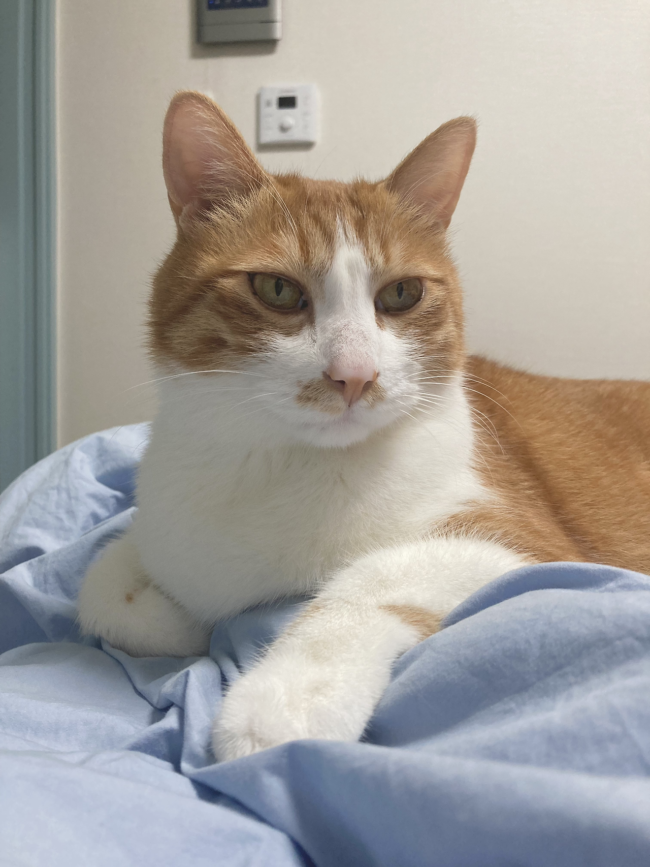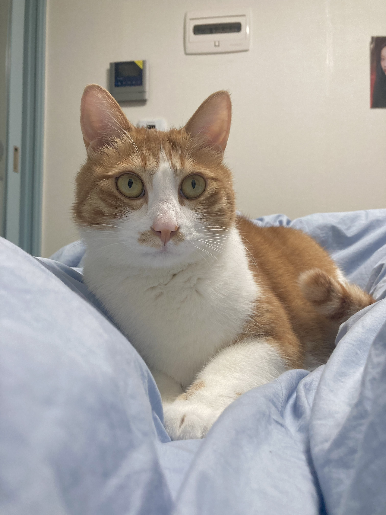 한편 모디가 가까이에 있으면 날카로운 기자가 되어서 대담을 시도하기도 해요. 마이크를 들이대는 시늉을 하고 왜 그리 뚱뚱하신지 한 말씀 부탁드려도 되겠습니까? 그렇게 귀여운 이유가 무엇일까요? 집사들이 먹이고 재우고 응가도 치우고 온갖 뒤치다꺼리를 다 하는데 이에 대해 전하실 말씀이 있는지?라는 중요한(?) 질문들을 합니다. 성질은 불같지만 대처 능력은 좀 떨어지는 우리의 모디는 정중하게 질문했음에도 불구하고 귀를 뒤로 잔뜩 젖히고 자리를 피해 버리거나 손을 깨물어서 응징을 시도한답니다. 그러면 모디가 결국 침이라도 퉤 뱉을 기세로 노려보다가 침대 밑으로 내려가 버릴 때까지 압박을 가하지요. 방금 기자 폭행에 대해 하실 말씀은 없으신가요? 그럼에도 불구하고 스스로 당당할 수 있게 만드는 본인만의 철학이 있다면? 자신이 귀엽다는 것을 어느 정도나 인지하고 있나요?라는 등의 질문을 하면서요. 진지한 대담 시간을 몇 번 가졌음에도 지금까지 모디에게 이렇다 할 답변을 들은 적은 없습니다만, 언젠가는 꼭 해명을 얻어내고 말 작정입니다.