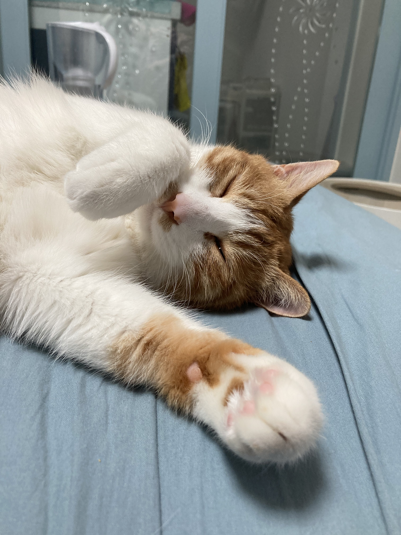 고양이의 침에는 탈취제 성분이 있다고 합니다. 그래서 털냄새나 발바닥 냄새가 변할 만한 어떤 일이 있어도, 일정 시간이 지나면 바로 쿠쿠리와 쿰쿰이를 맡을 수 있답니다. 이전 집의 창문은 너무 부실해서 모디가 열고 나가는 일이 몇 번 있었습니다. 너무 방심한 제 잘못이지요. 모디가 집 근처에서만 놀고 들어와서 별 문제는 생기지 않았지만, 그렇게 아찔한 상황을 겪고 나면 혹시 밖에서 병균이라도 옮을까 하여 목욕을 시켜야만 했습니다. 즐거운 시간을 보내고 와서 이게 웬 날벼락인가 싶었을 테고 저도 마음이 아팠지만 어쩔 수 없었지요. 모디는 나가자마자 신나게 콘크리트 바닥에 몸을 부비며 탈출의 기쁨을 만끽했고 몇 시간 동안 놀았으니 족히 수십 번은 더 뒹굴었을 테니까요. 둘 다 지쳐 버리는 목욕 시간이 끝난 뒤 모디는 누가 봐도 짜증이 머리끝까지 치민 얼굴로 몸단장을 시작했는데, 샴푸 냄새가 털에 배어 쿠쿠리 쿰쿰이를 묻어 버렸군요. 기력이 다할 때까지 털을 핥다가 그대로 잠들어 버렸습니다.
