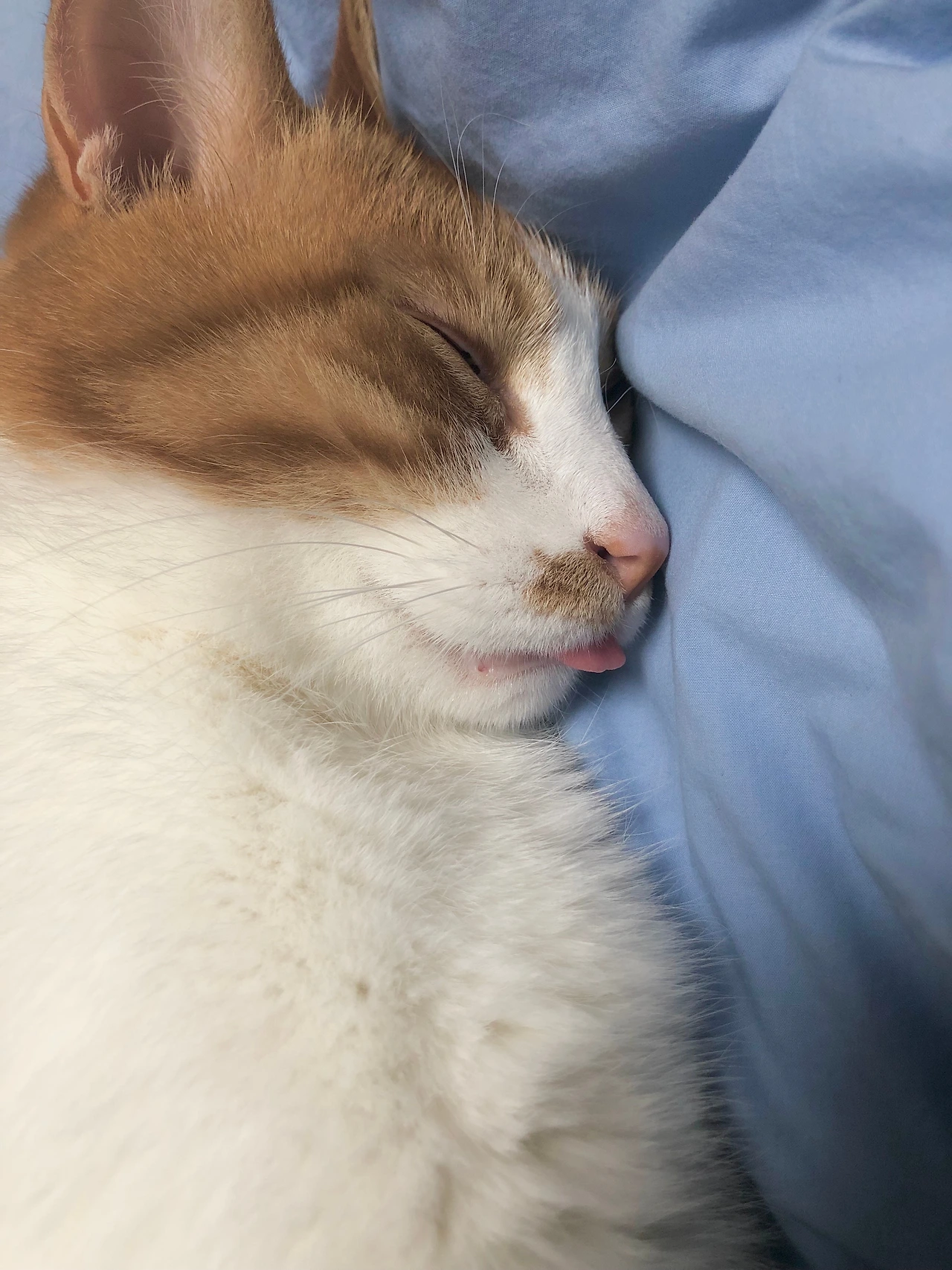 모디의 양치질은 잠들기 직전에 이루어집니다. 벌써 선잠이라도 자고 있으면 우선 우연을 가장한 채 잠을 깨워야 합니다. 잘 자고 있는데 칫솔이 입에 갑자기 들어오면 누구라도 화가 날 테니까요. 아무리 양치질이 중요해도 그런 결례를 범해서는 안 됩니다. 깨어나서 눈을 슬그머니 뜬 모디가 어느 정도 정신을 차릴 때까지 기다렸다가, 오른손으로는 궁둥이를 받쳐 들고 왼손으로는 겨드랑이를 잡은 다음 팔을 교차시켜서 다리 위에 올려놓습니다. 춥춥이 예비동작과 비슷하지만 이 경우에는 아예 벌러덩 눕힌다는 점이 다르답니다. 그러면 모디는 앞발을 살짝꿍 접은 상태로 눈을 크게 뜨고 저를 바라보는데, 마치 또 이 난리를 칠 때가 왔냐고 묻는 것 같습니다. 아니면 제발 오늘만 넘어가 달라고 하는 것 같기도 하지요. 육두문자가 섞인 것 같은, 낮은 꾸우웅 소리를 내는 경우도 있습니다. 모디가 완전히 누워 있으면 포실포실한 뱃살과 털이 더 잘 보이긴 하지만, 이때만큼은 만져 대고 싶은 유혹을 좀 접어 두어야 합니다. 작정하고 골탕먹이려는 상황도 아니고, 가뜩이나 화를 내기 일보 직전인데 만지기까지 하면 일을 더 키우기만 할 뿐이니까요. 뒷발차기를 정타로 맞기 딱 좋은 자세이기도 하고요.
