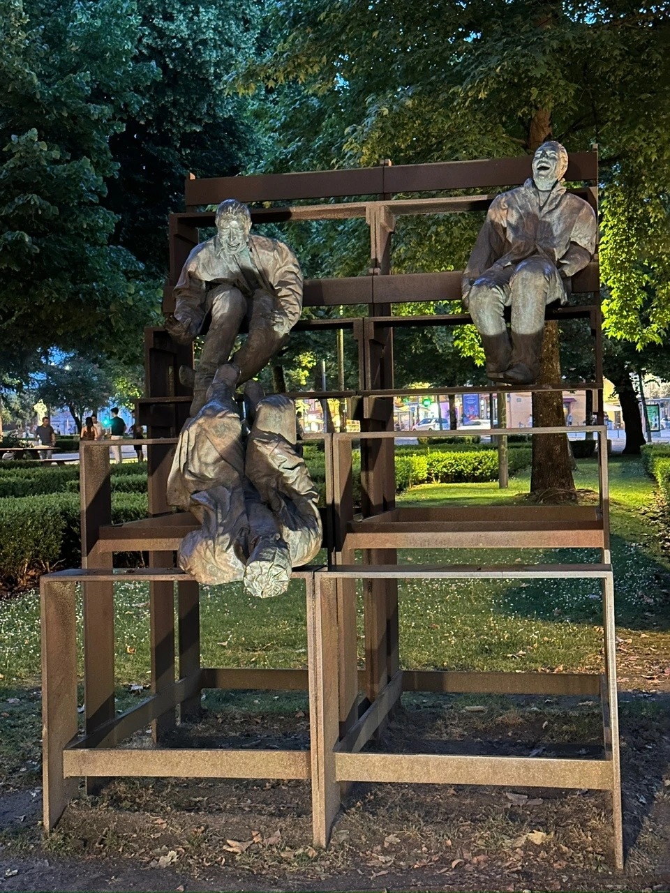 가로수길을 걷다 보면 벤치에 앉거나 누워 웃고 있는 남자들의 동상이 있다. 이는 낮에 보면 웃는 표정으로 보이는데, 캄캄한 밤에 조명만 켜진 상태에서 보면 더이상 웃는 게 아니라 기괴하게 일그러진 표정으로 보인다는 점이 감상 포인트라고 한다.