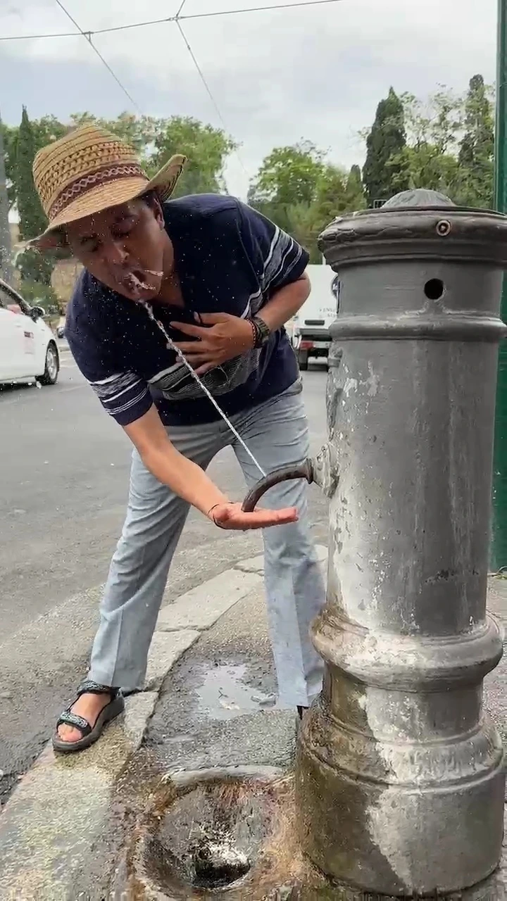 남편은 나에게 동영상을 찍어달라고 하더니 그대로 따라 물을 마시기 시작했다.