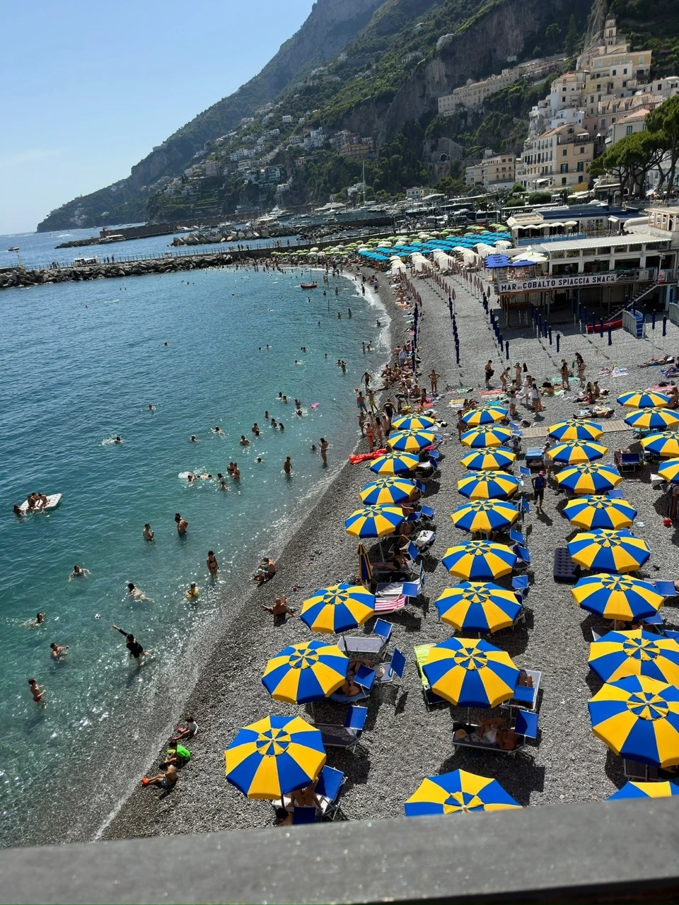 드디어 도착한 포지타노의 해변. 장장 3시간을 거의 쉼없이 달려 골반이 아프고 다리가 저리고 발가락도 먹먹했다. 나도 이럴진데 운전까지 한 남편은 더 힘들었을 거다. 그럼에도 불구하고 바이크를 타고 이곳까지 온 것은 잘한 결정이었다. 깎아지른 절벽위의 드라이브와 따개비처럼 해안절벽에 붙은 파스텔톤의 집들이 자아내는 이색적 풍경은 그 어디서도 경험하기 어려운 것이었다. 아마 포기했더라면 두고두고 후회했을 것이다.